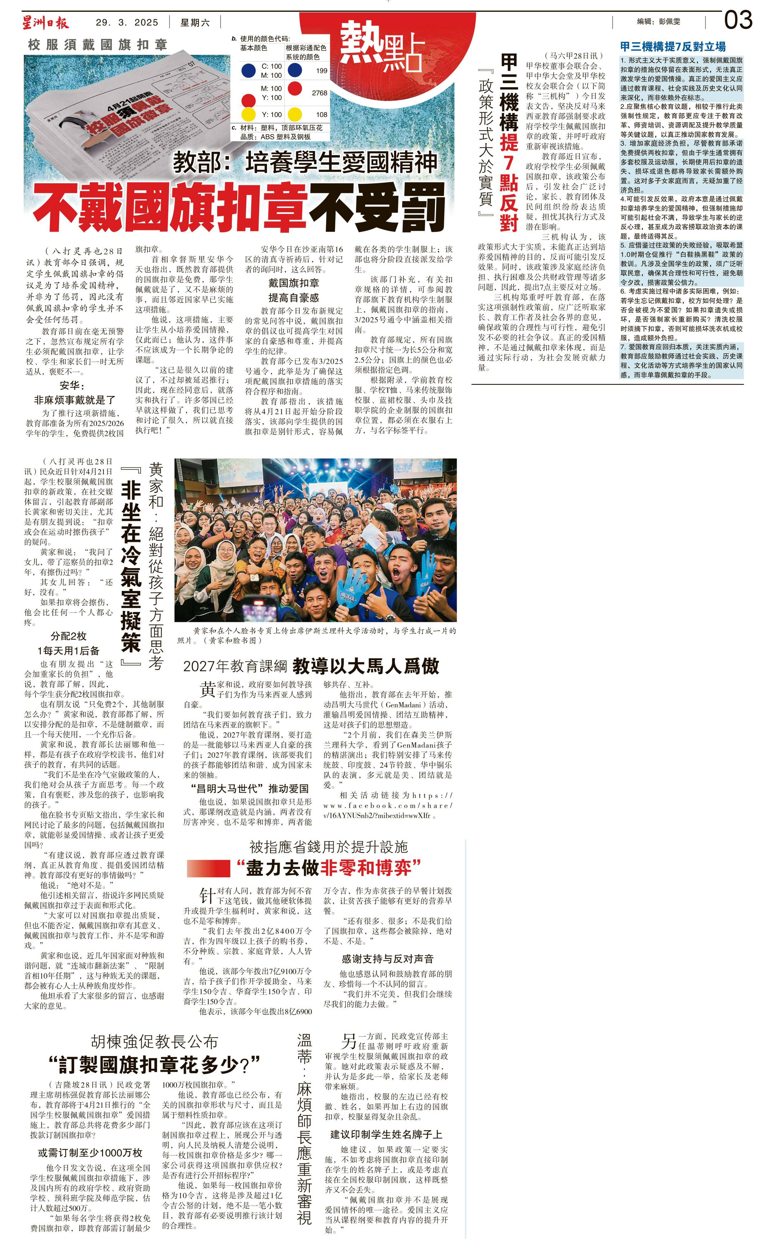 校服须佩戴国旗扣章新闻剪报