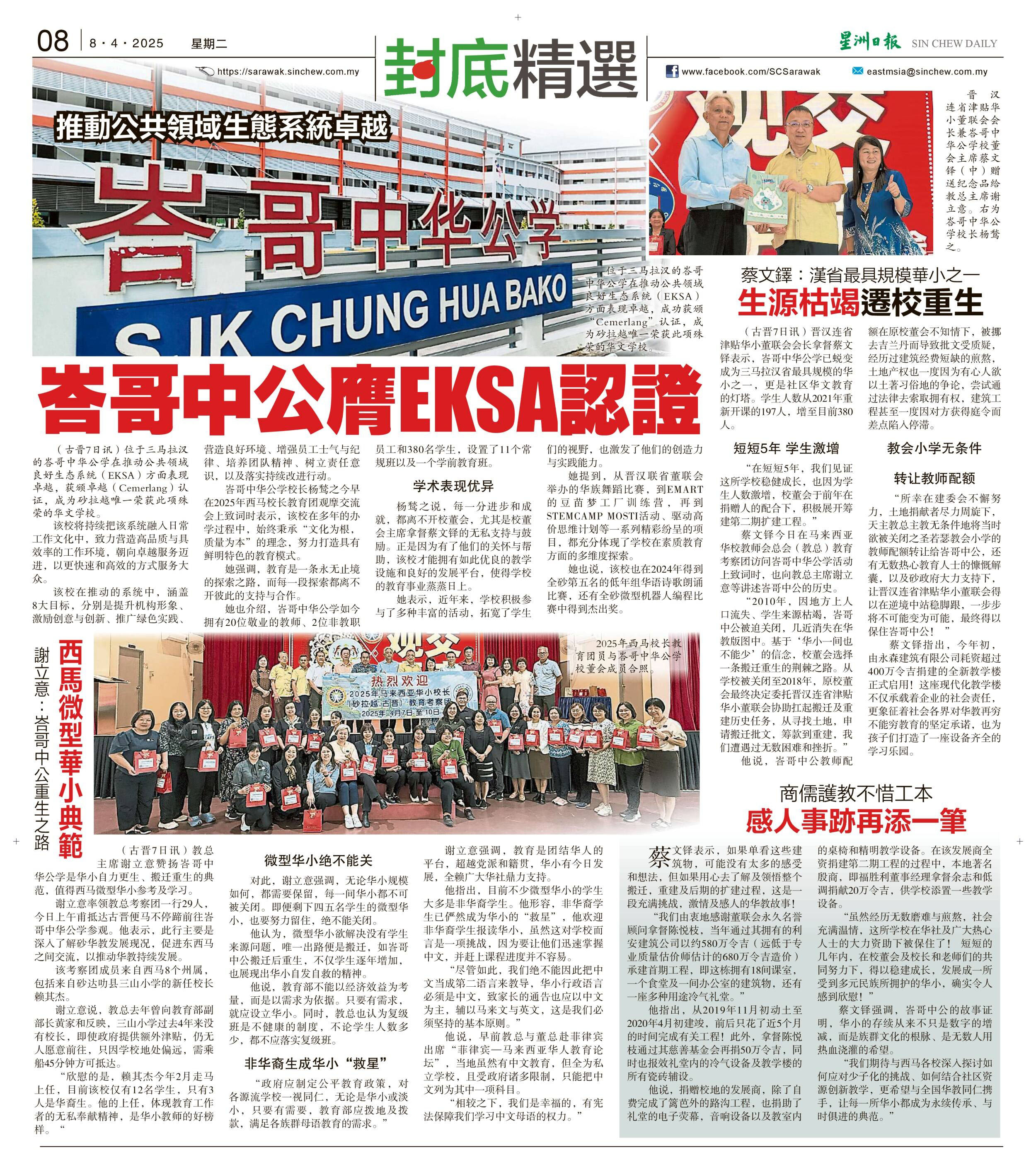 推动公共领域生态系统卓越 峇哥中公膺EKSA认证 WhatsApp 上一篇文章: 谢立意:勇敢坚持到退休之龄 华小教师别提早“退缩” 上一页 下一篇文章: 锡米山学校鼓励多阅读 28万打造梦幻图书馆 下一页