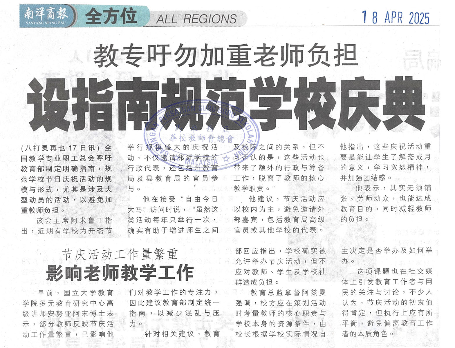 教专吁勿加重老师负担,设指南规范学校庆典