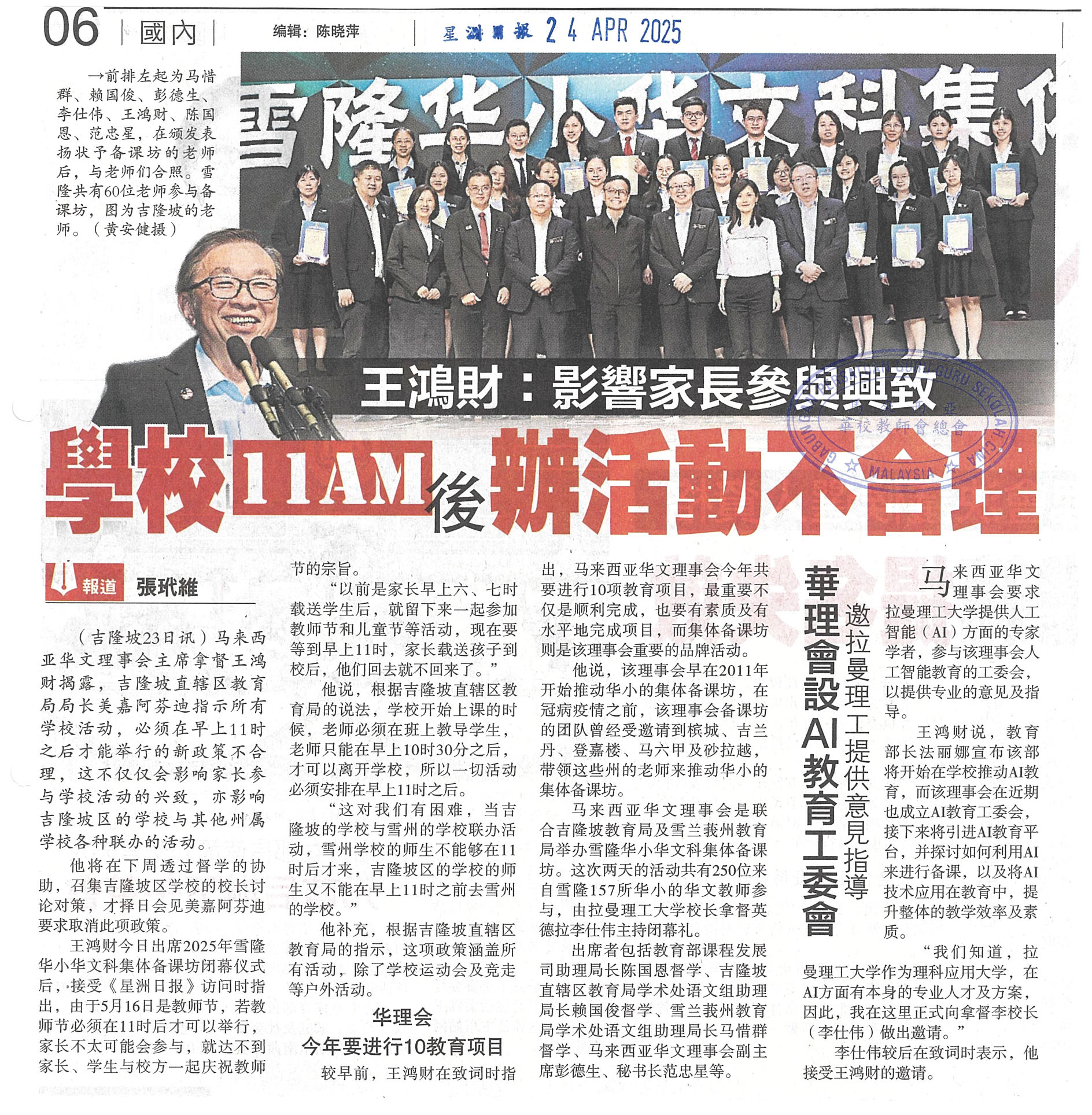 王鸿财:学校11AM后办活动不合理,影响家长参与兴致