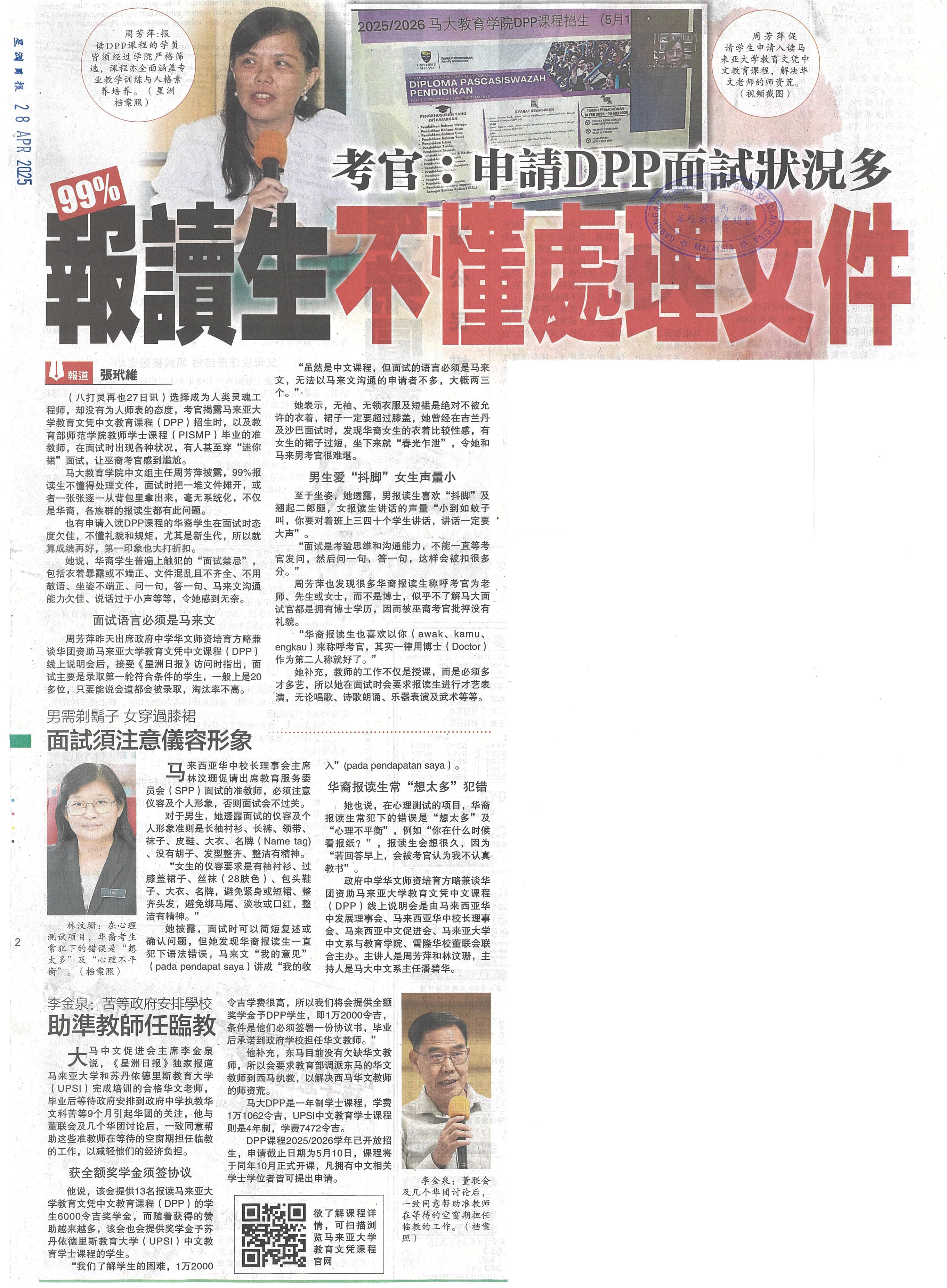考官:申请DPP面试状况多,99%报读生不懂处理文件 WhatsApp 上一篇文章: 去年3.3万人来马深造,中留学生增25% 上一页 下一篇文章: 从“满江红”到全科及格,校长亲自教后进生蜕变 下一页