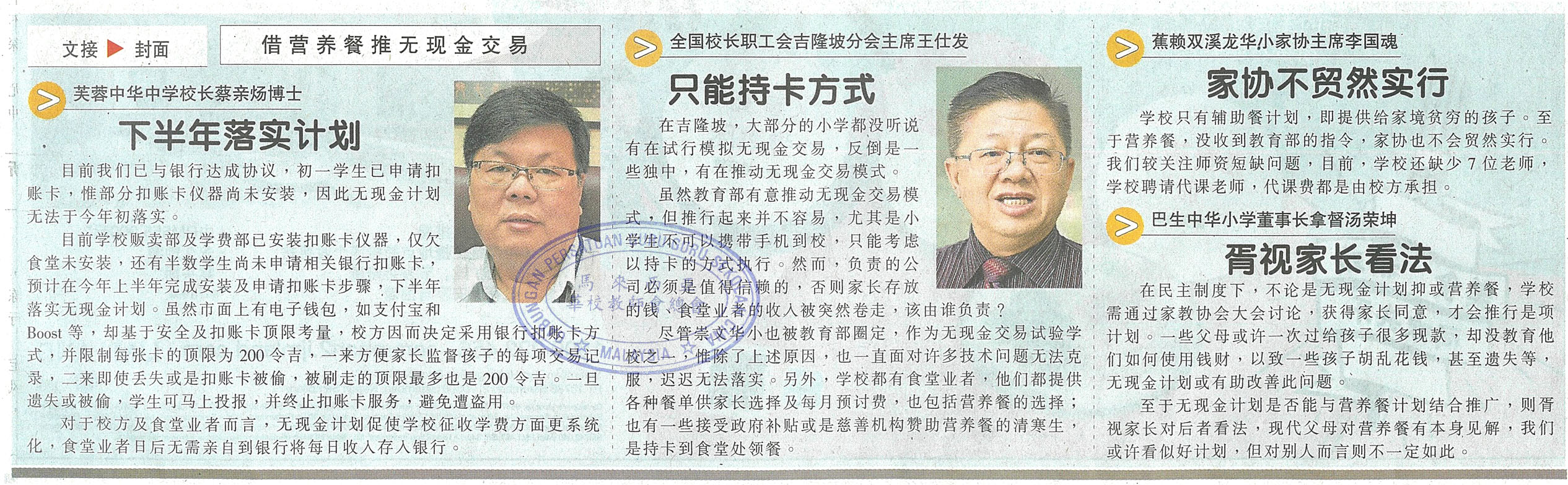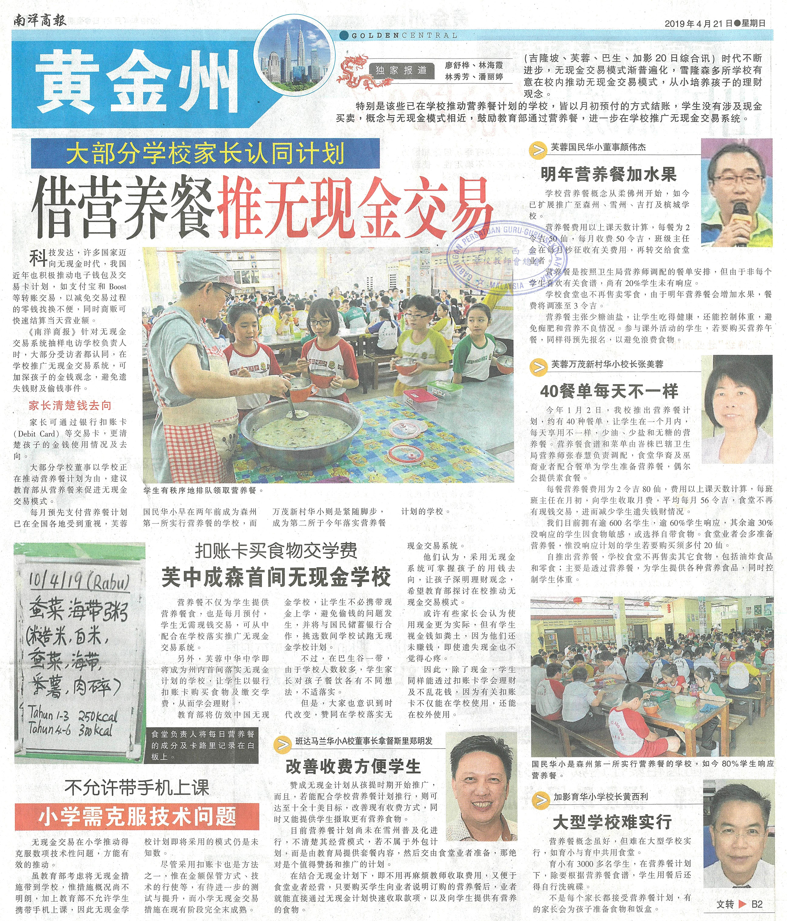 大部分学校家长认同计划 借营养餐推无现金交易