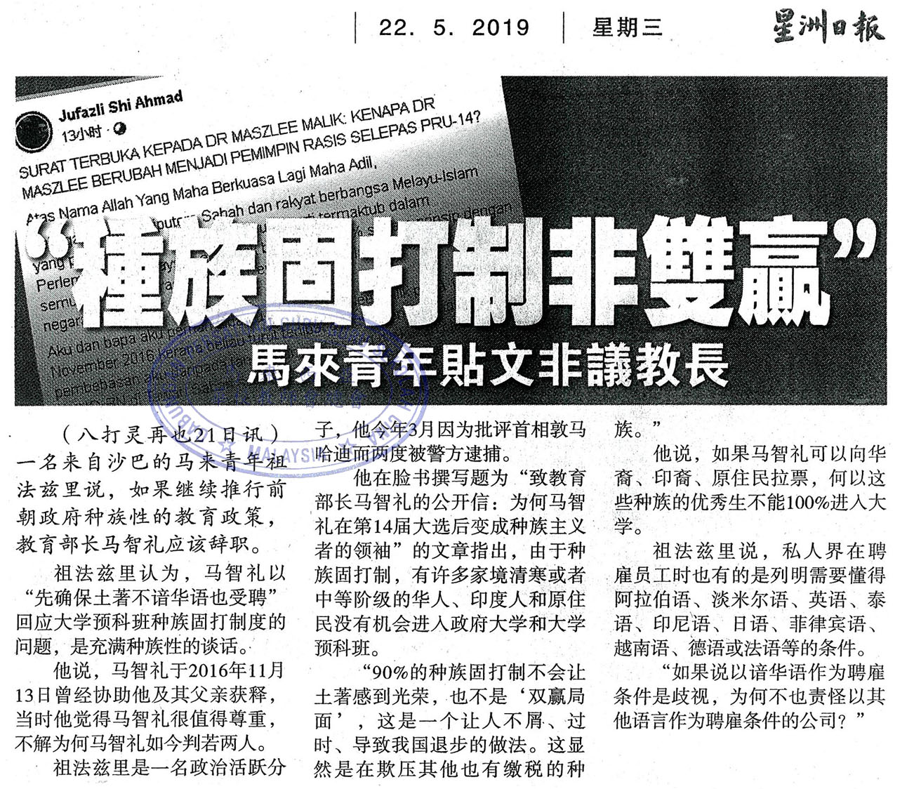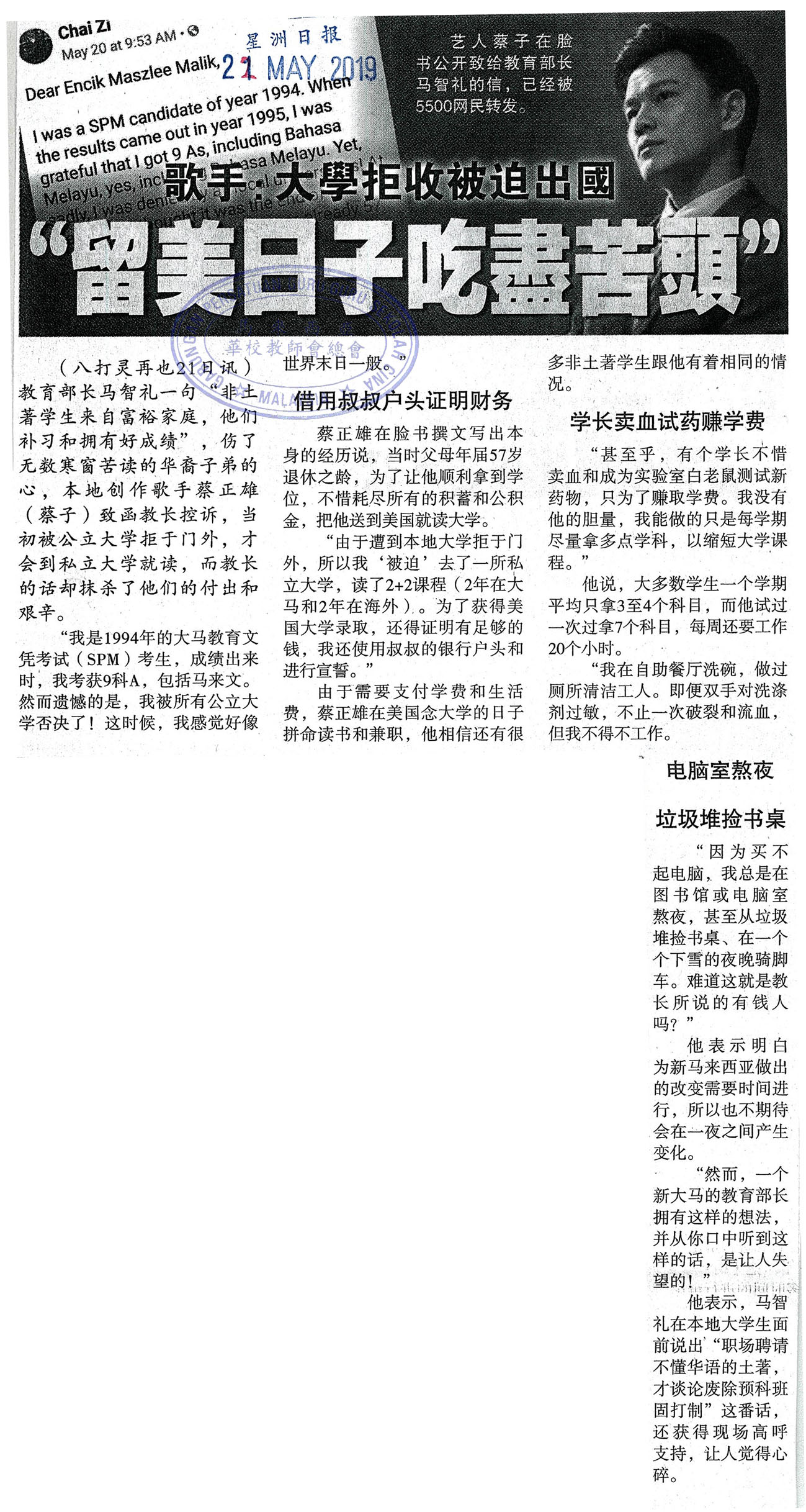 下一篇文章: 张念群:华小华中等各获5000万 申请教部拨款31日截止