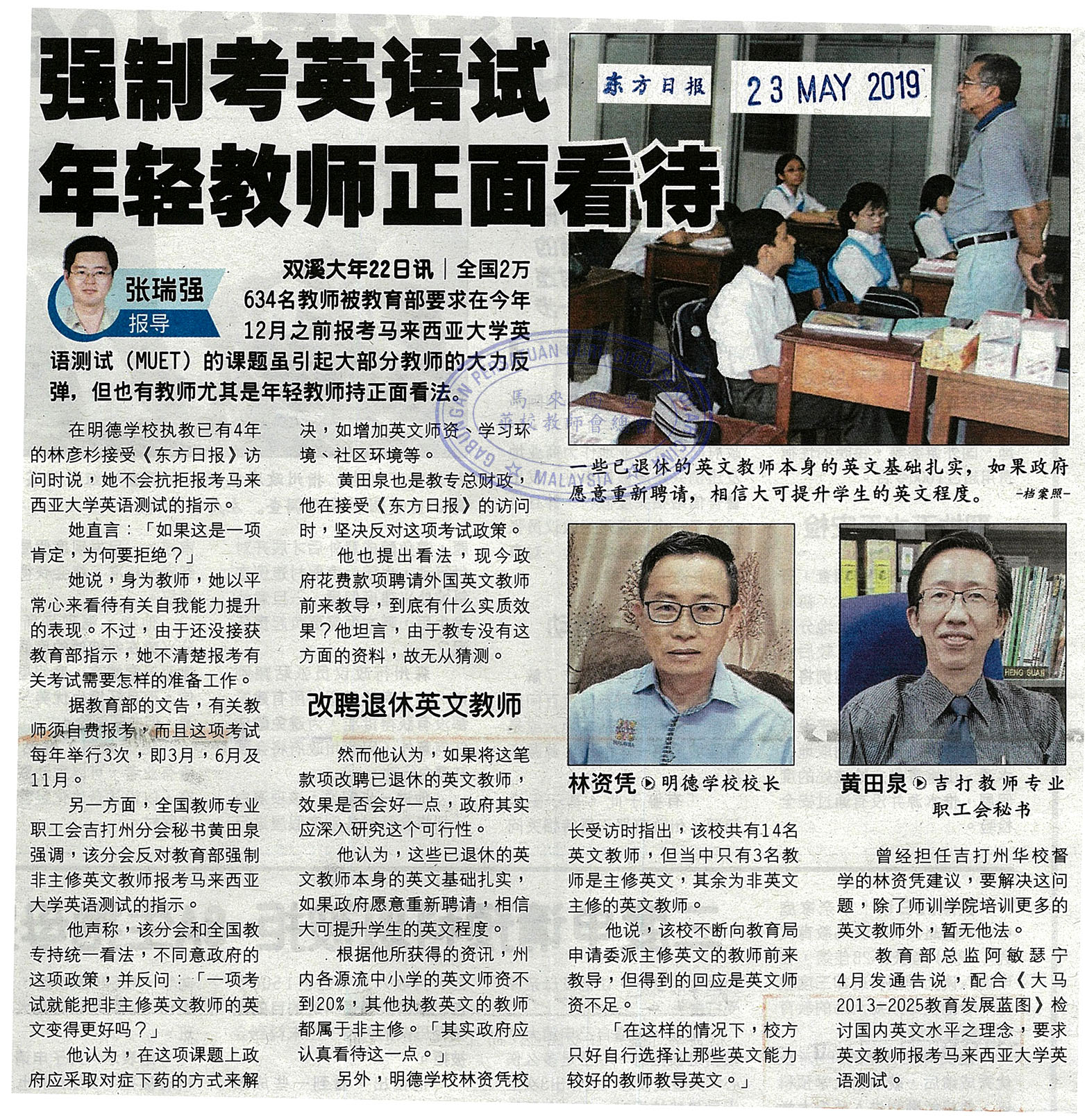 强制考英语试 年轻教师正面看待