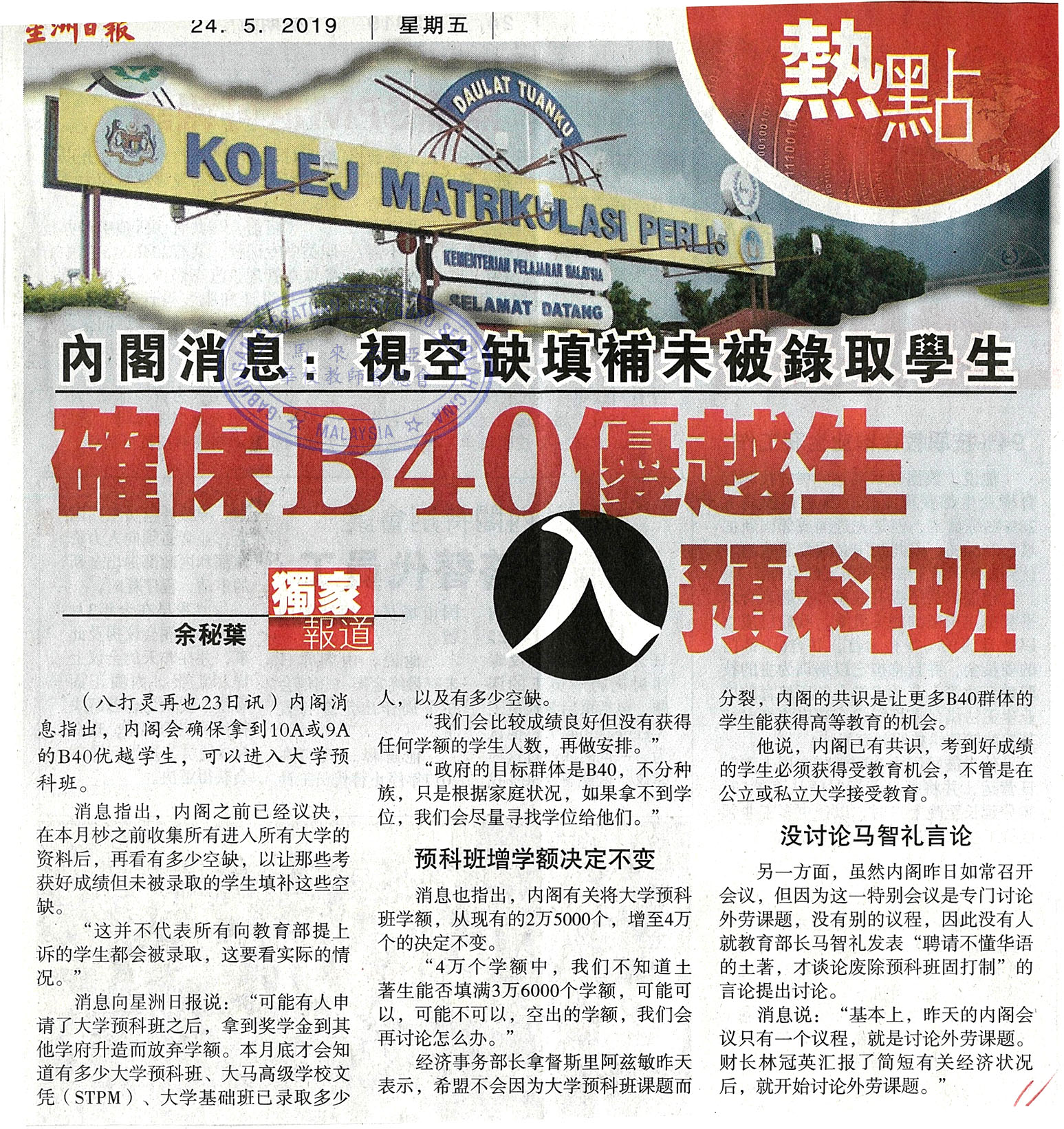 预科班固打制新闻