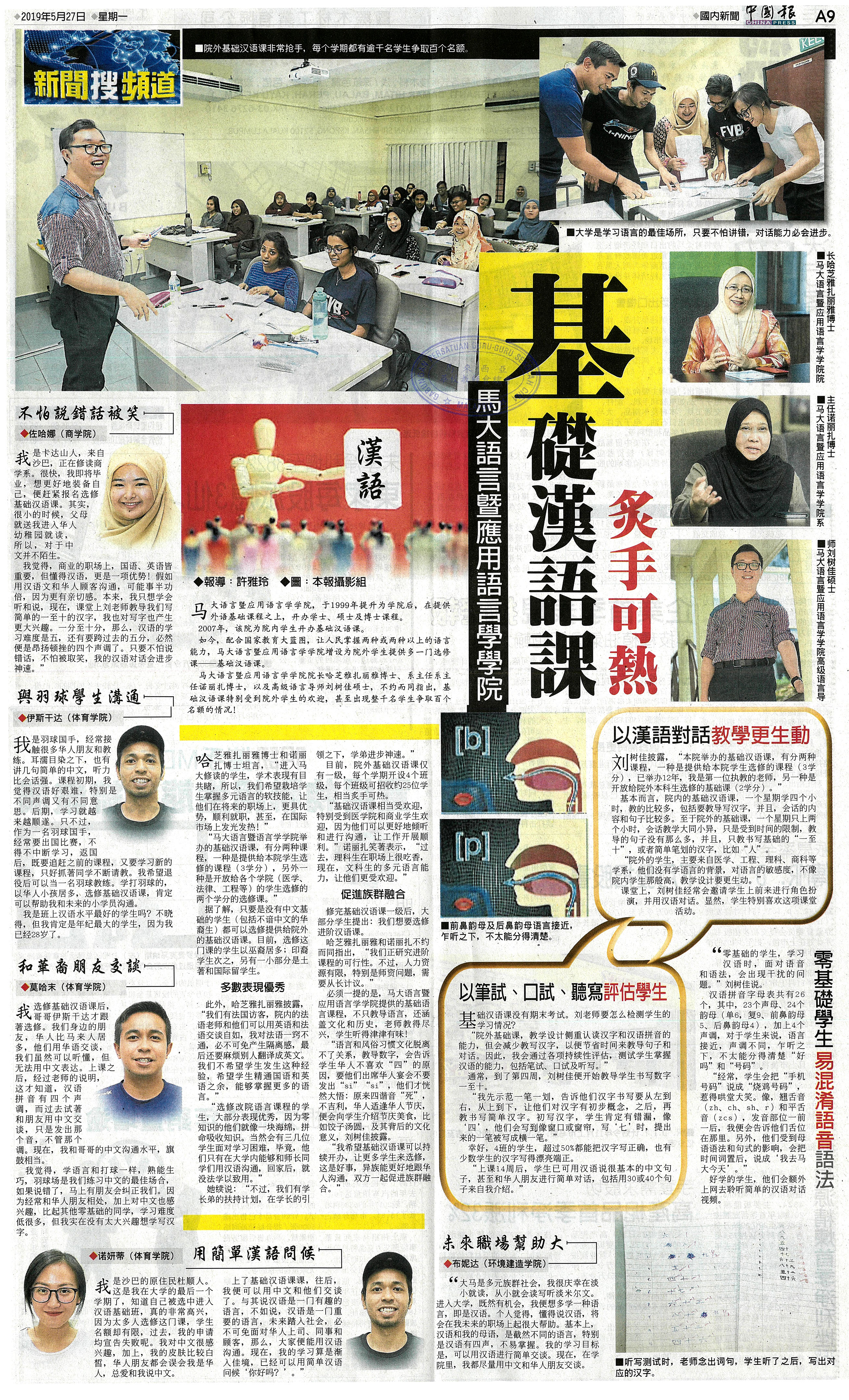 马大语言暨应用语言学学院基础汉语课 炙手可热