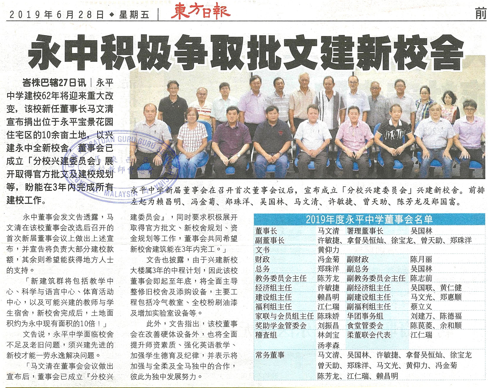 永中积极争取批文建新校舍