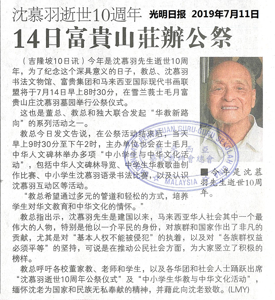沈慕羽逝世10周年  14日富贵山庄办公祭