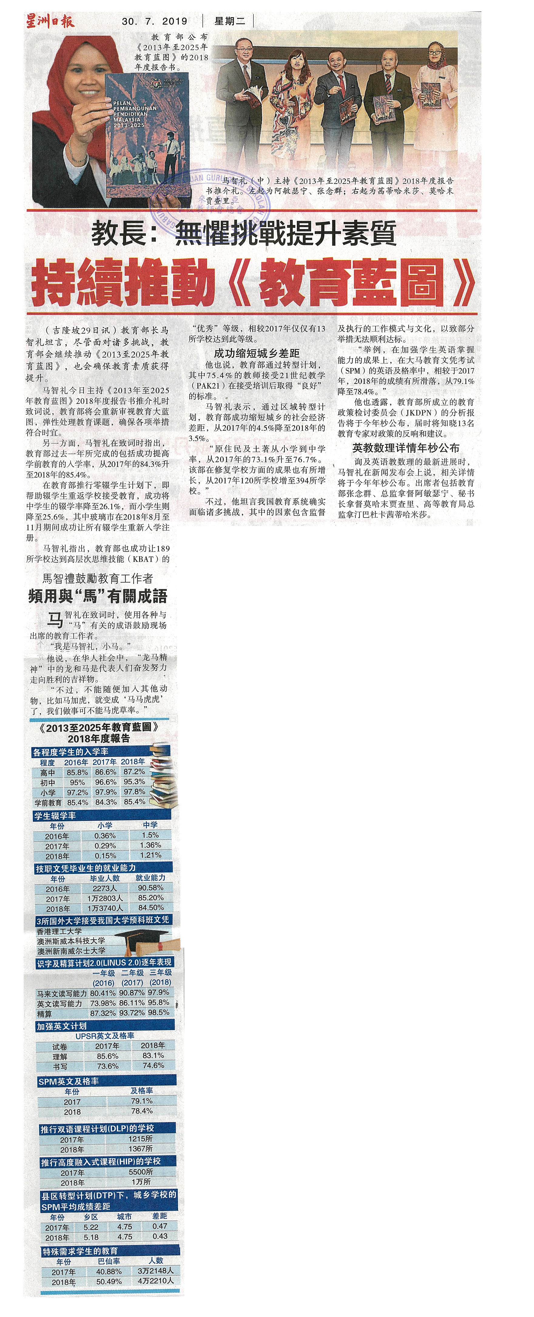 教长:无惧挑战提升素质 持续推动《教育蓝图》