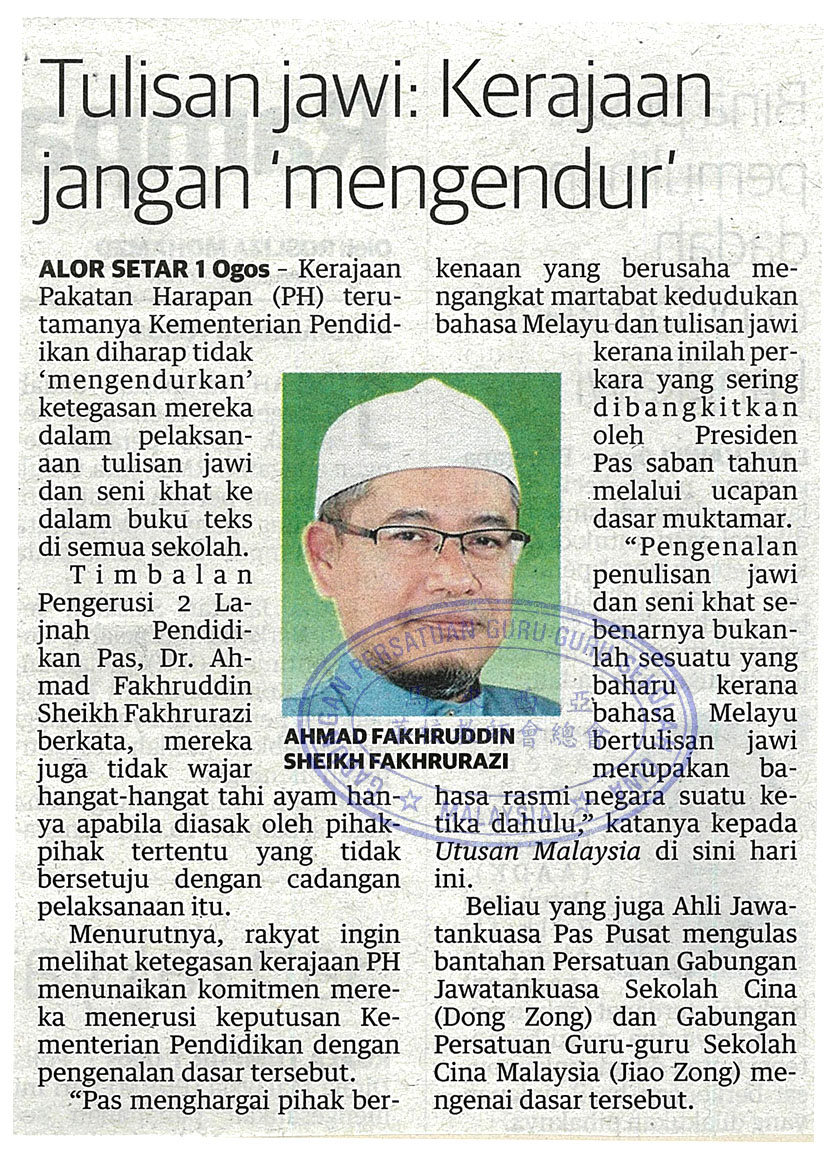 华淡小国文科增设爪夷文书法艺术单元新闻剪报(马来媒体) WhatsApp 上一篇文章: 华淡小国文科增设爪夷文书法艺术单元新闻剪报 上一页 下一篇文章: 育华小学为加影培育幼苗 中小学体现一家精神 下一页
