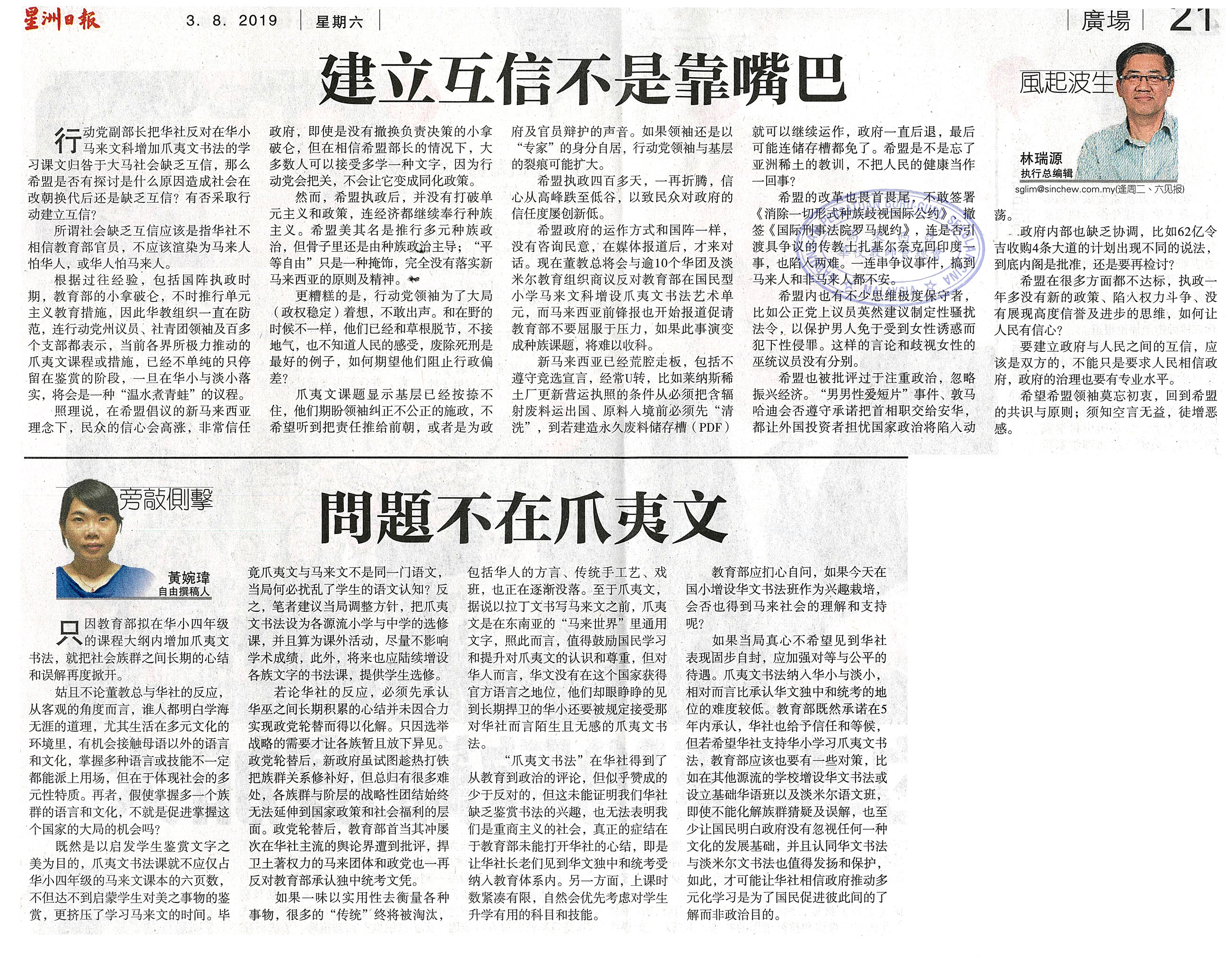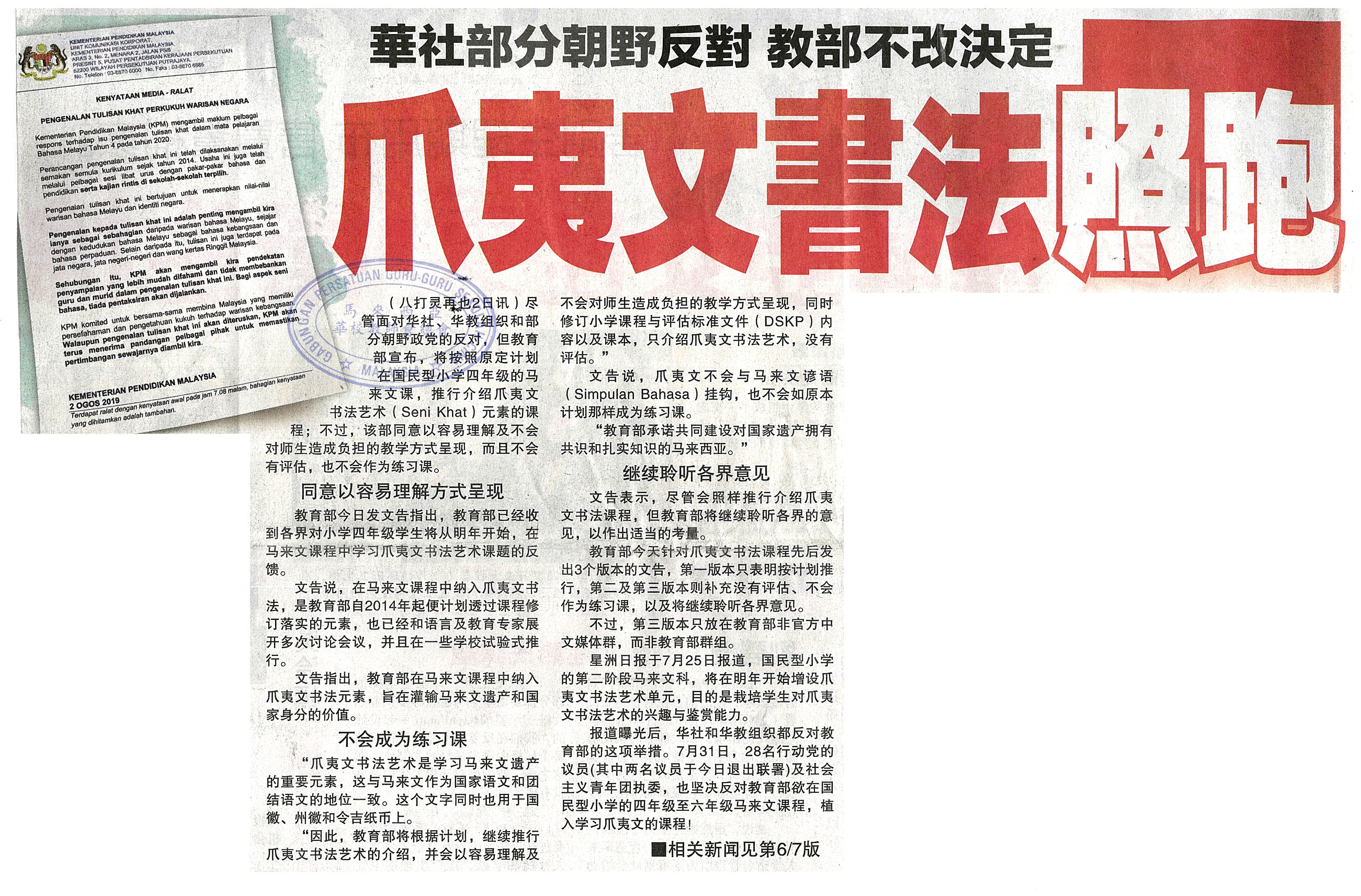 华淡小国文科增设爪夷文书法艺术单元新闻剪报 WhatsApp 上一篇文章: 华淡小国文科增设爪夷文书法艺术单元新闻剪报 上一页 下一篇文章: 华淡小国文科增设爪夷文书法艺术单元新闻剪报(马来媒体) 下一页