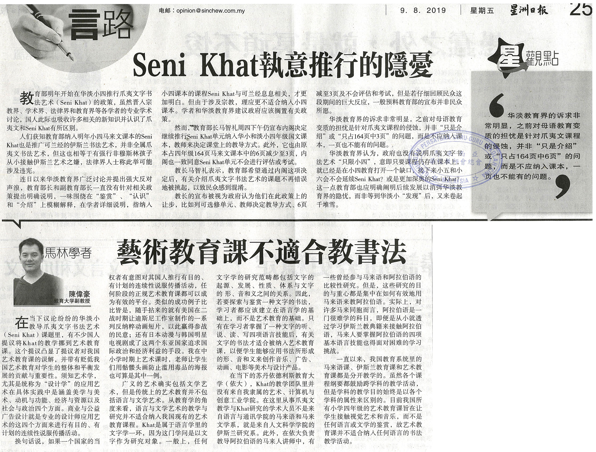 华淡小国文科增设爪夷文书法艺术单元新闻剪报