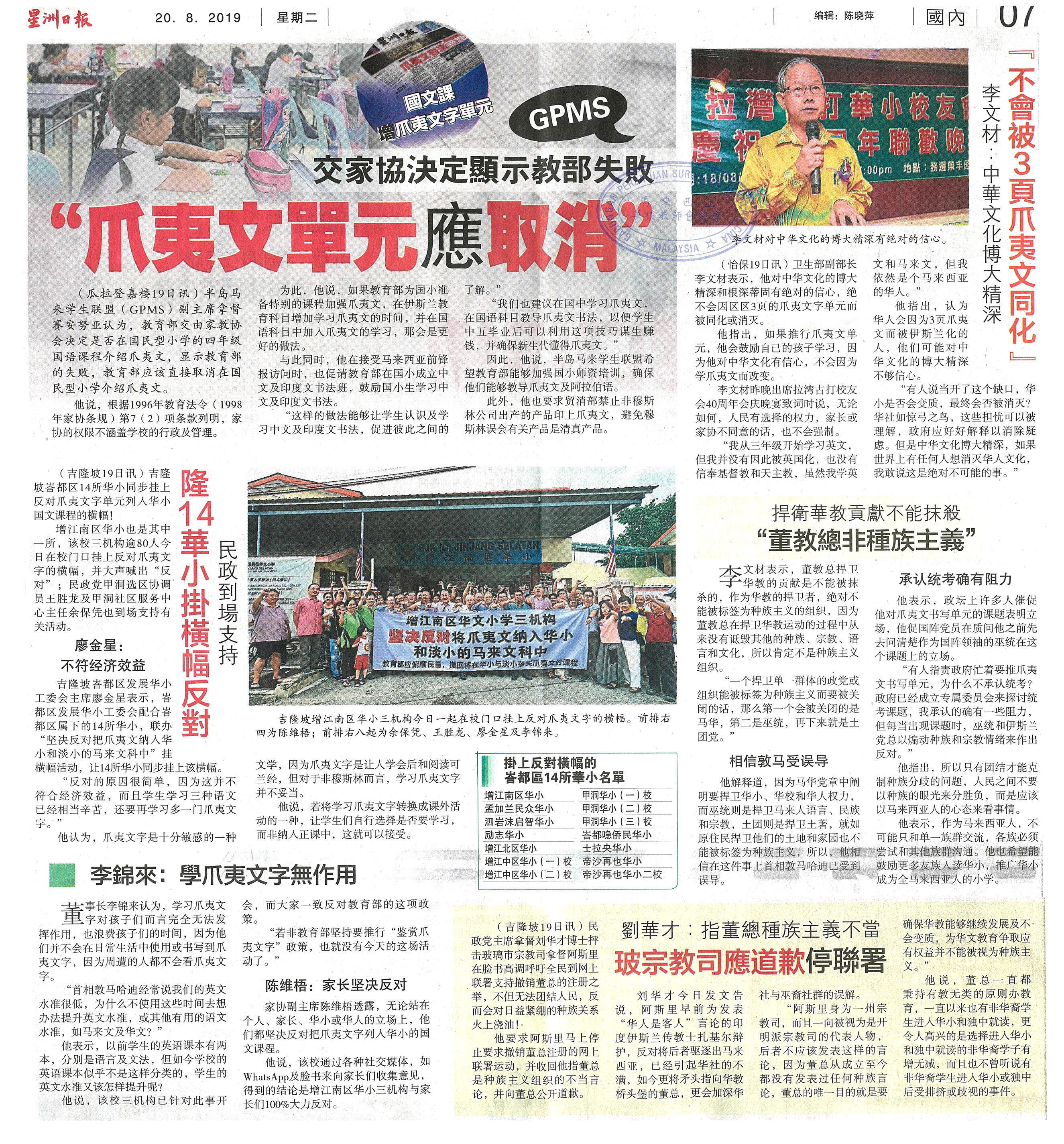 凯里:1957和1963年错过时机 现难推单一源流学校 WhatsApp 上一篇文章: 张念群吁有意者速申请 中学组教师开始面试 上一页 下一篇文章: 华淡小国文科增设爪夷文书法艺术单元新闻剪报 下一页