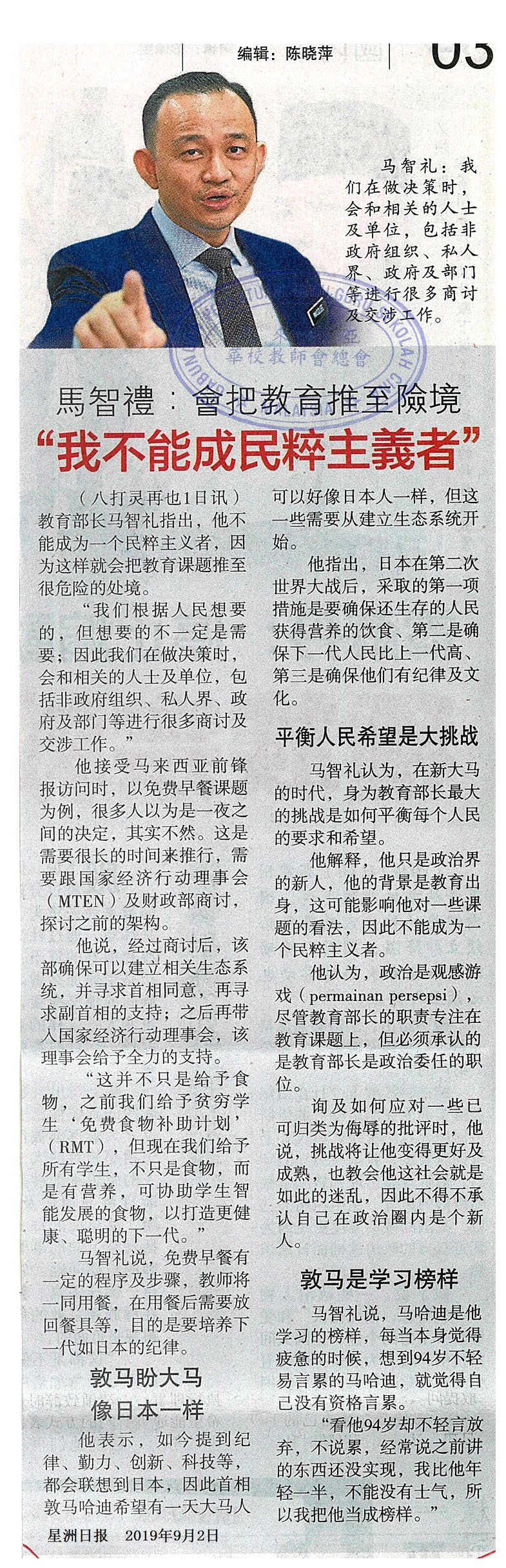 马智礼:会把教育推至险境 “我不能成民粹主义者“