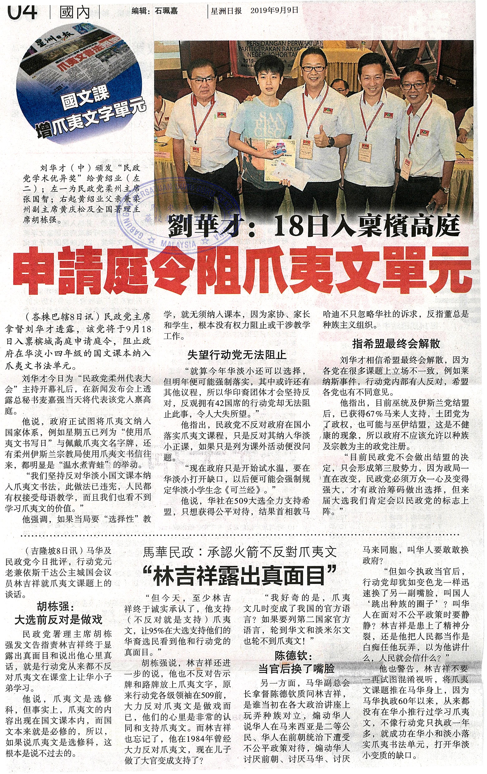 刘华才:18日入禀槟高庭 申请庭令阻爪夷文单元