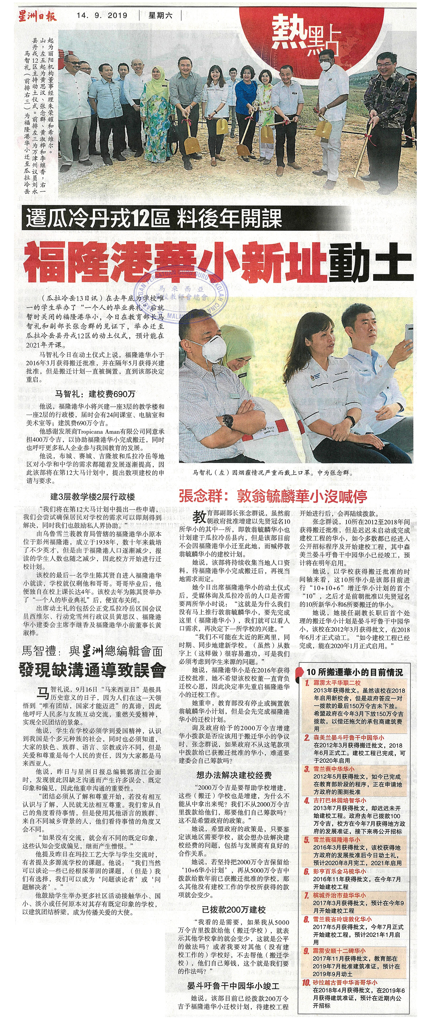 迁瓜冷丹戎12区 料后年开课 福隆港华小新址动土