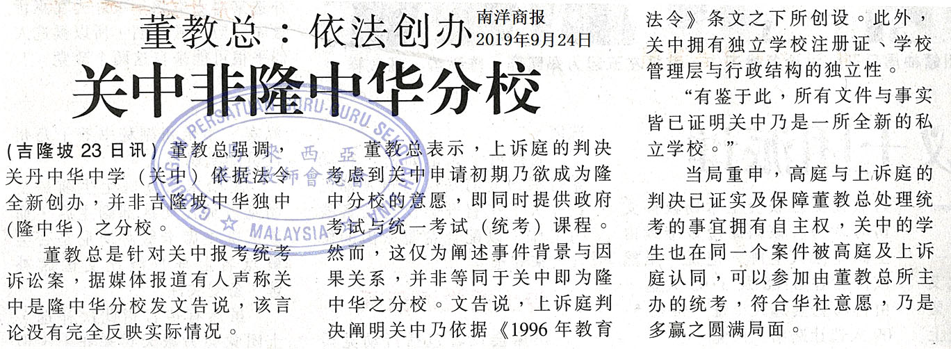 董教总:依法创办 关中非隆中华分校