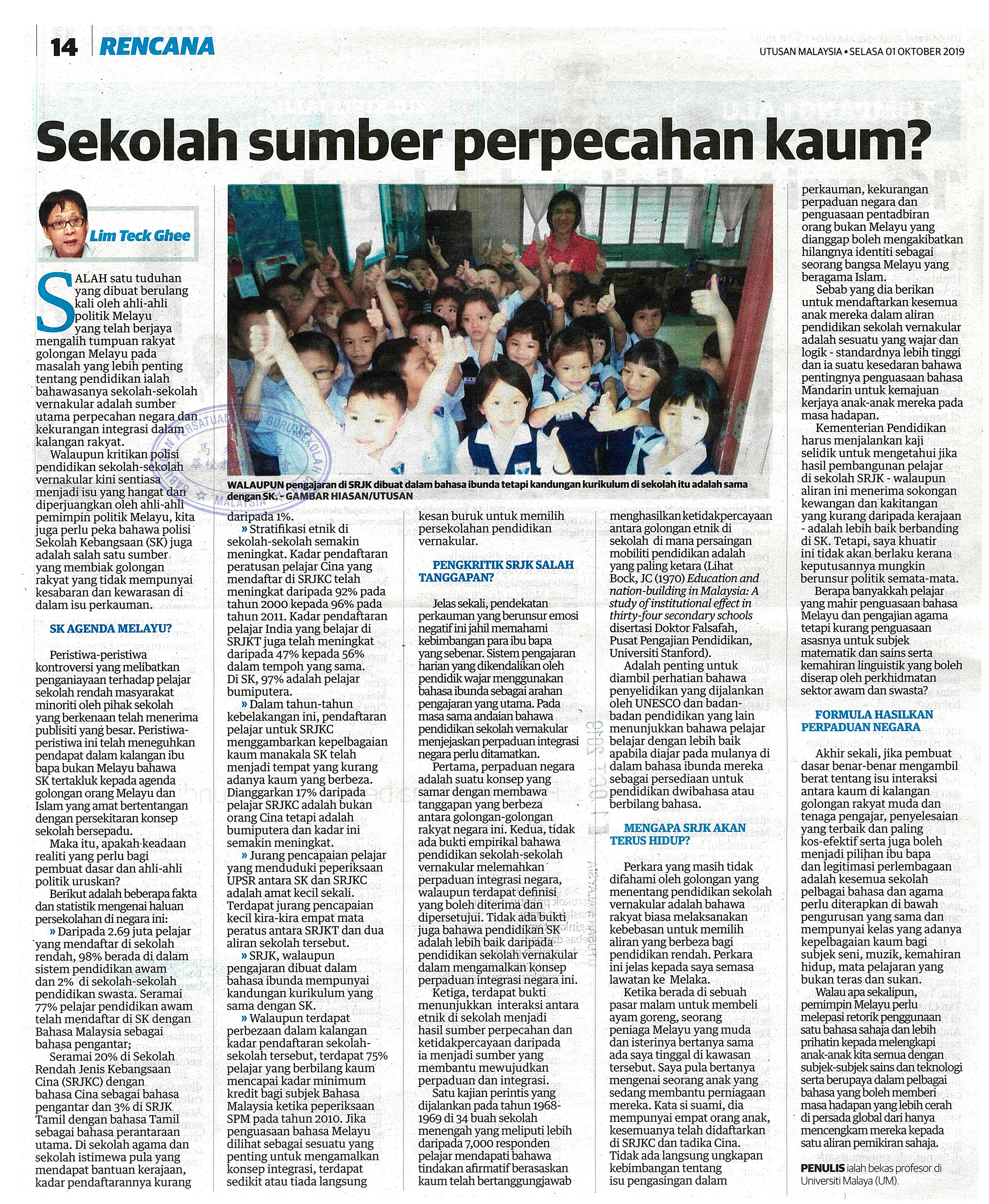 SEKOLAH SUMBER PERPECAHAN KAUM? WhatsApp 上一篇文章: 魏家祥抨沙承认统考不“全面” 上一页 下一篇文章: 教总:调派正副校长常引争议“列明须华文资格可息争” 下一页