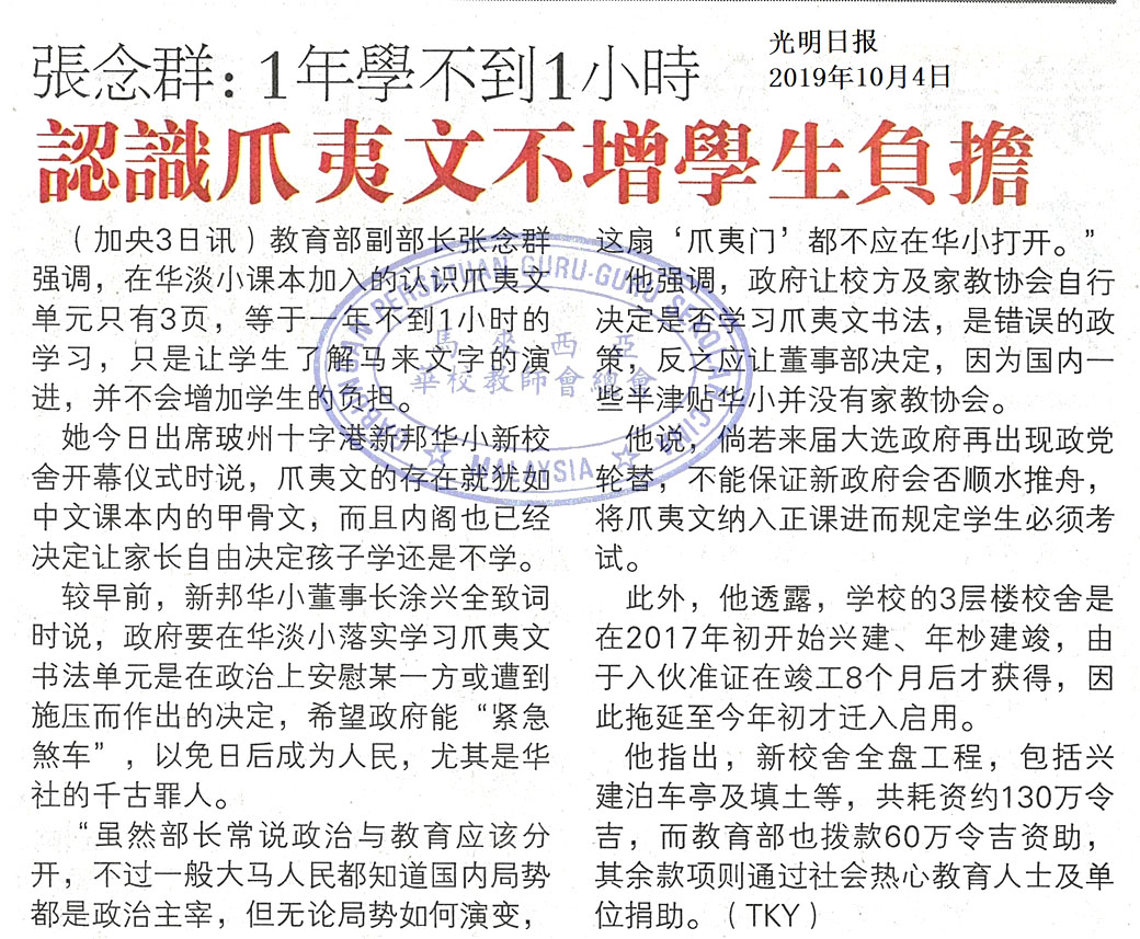 张念群:1年学不到1小时 认识爪夷文不增学生负担