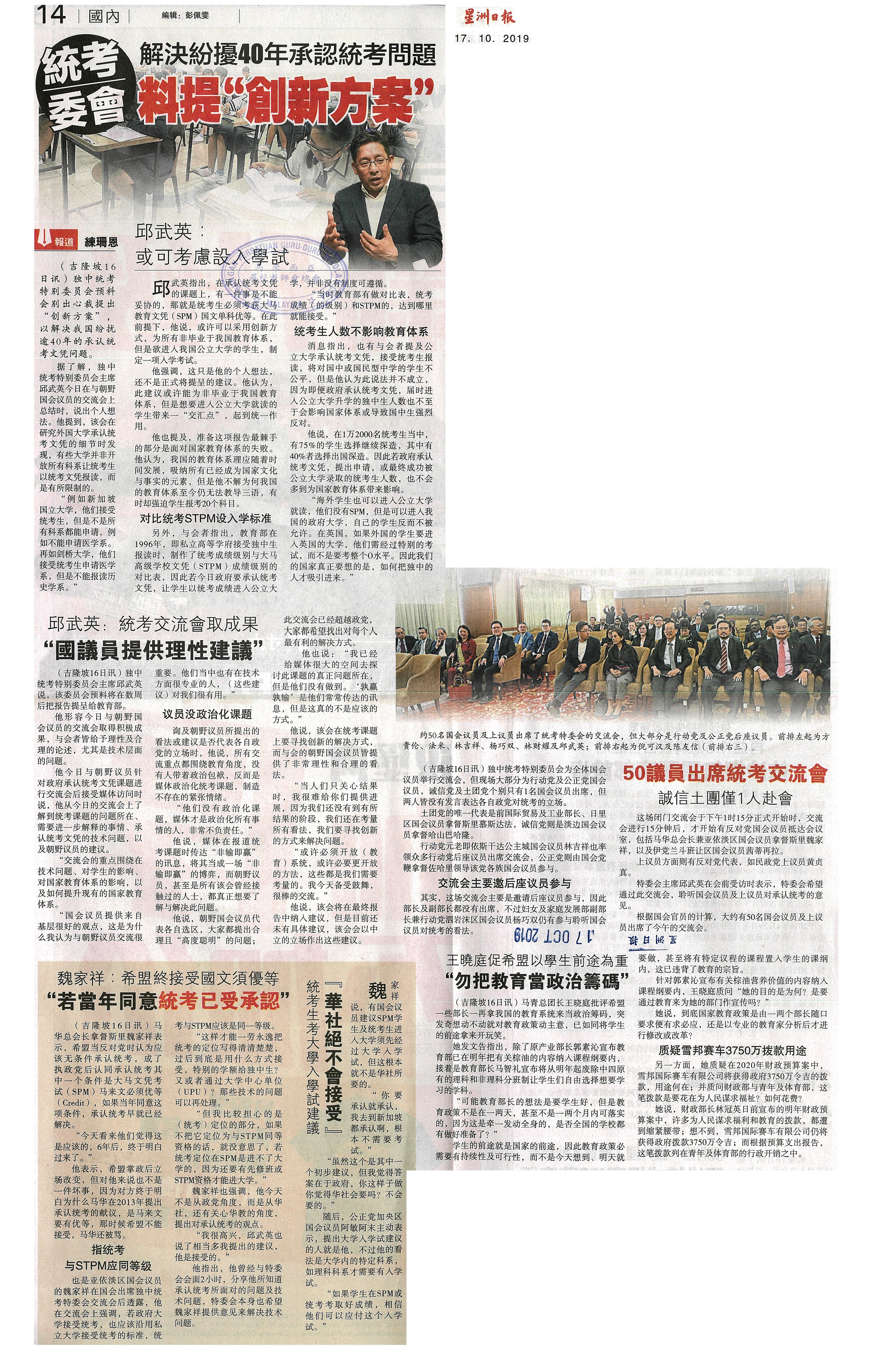 统考委会 解决纷扰40年承认统考问题 料提“创新方案” WhatsApp 上一篇文章: 教部发逾5万录取书 近3万学生拒读预科班 上一页 下一篇文章: 华裔居民“愿望”露曙光 沙白一微小或迁皇冠城 下一页
