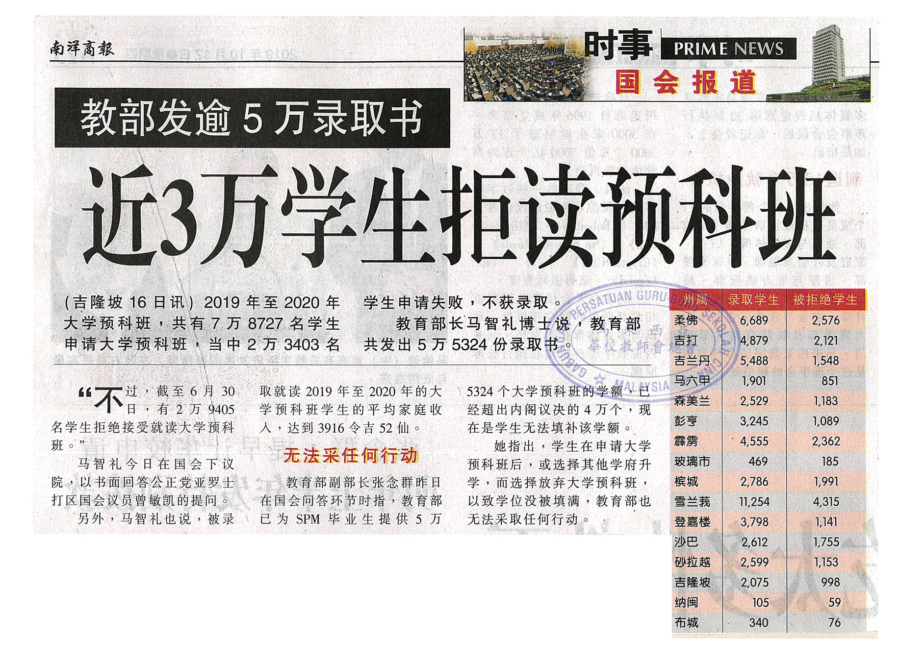 教部发逾5万录取书 近3万学生拒读预科班