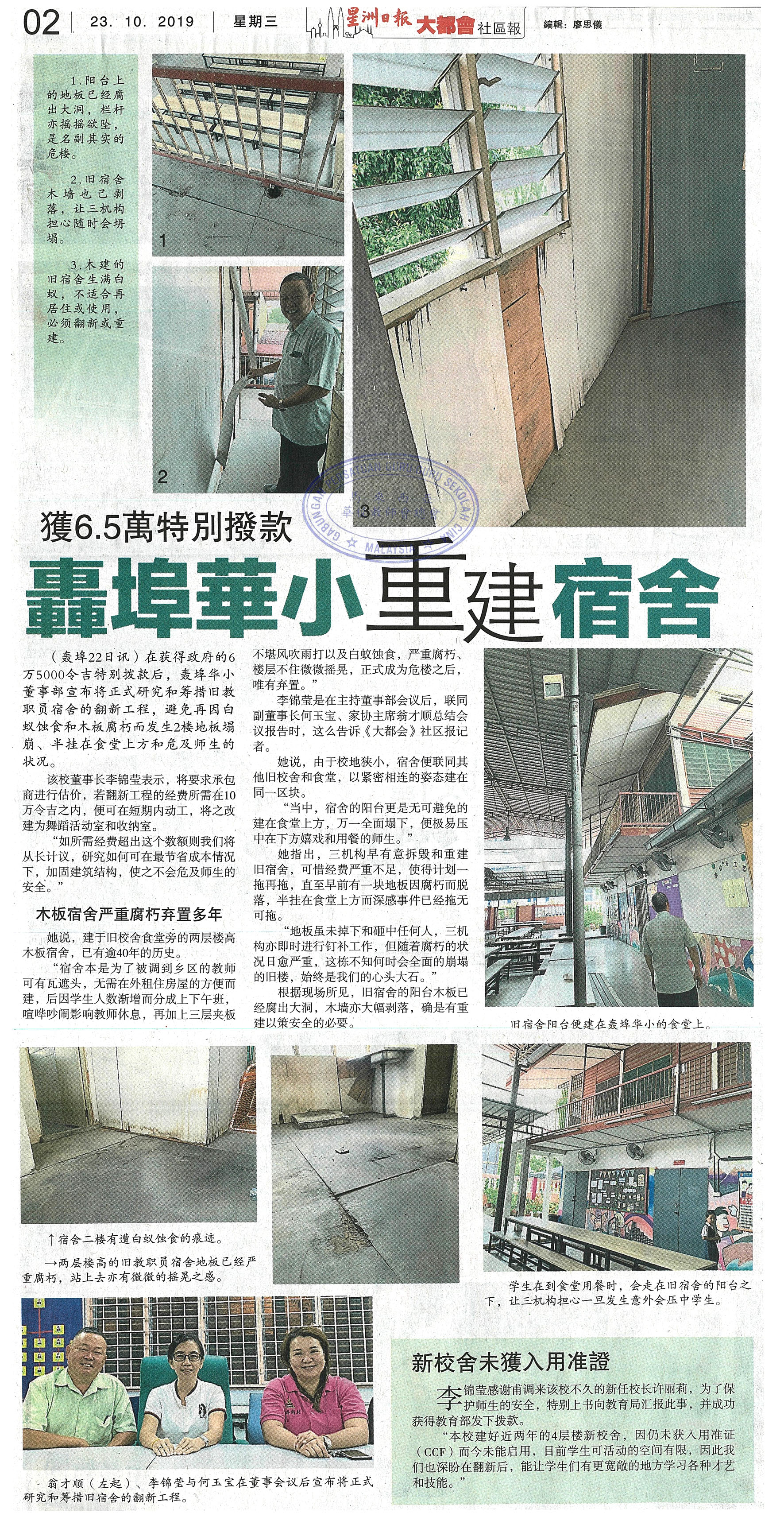 获6.5万特别拨款 轰埠华小重建宿舍