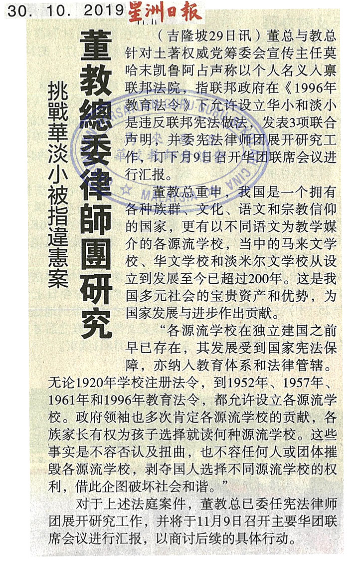 挑战华淡小被指违宪案 董教总委律师团研究