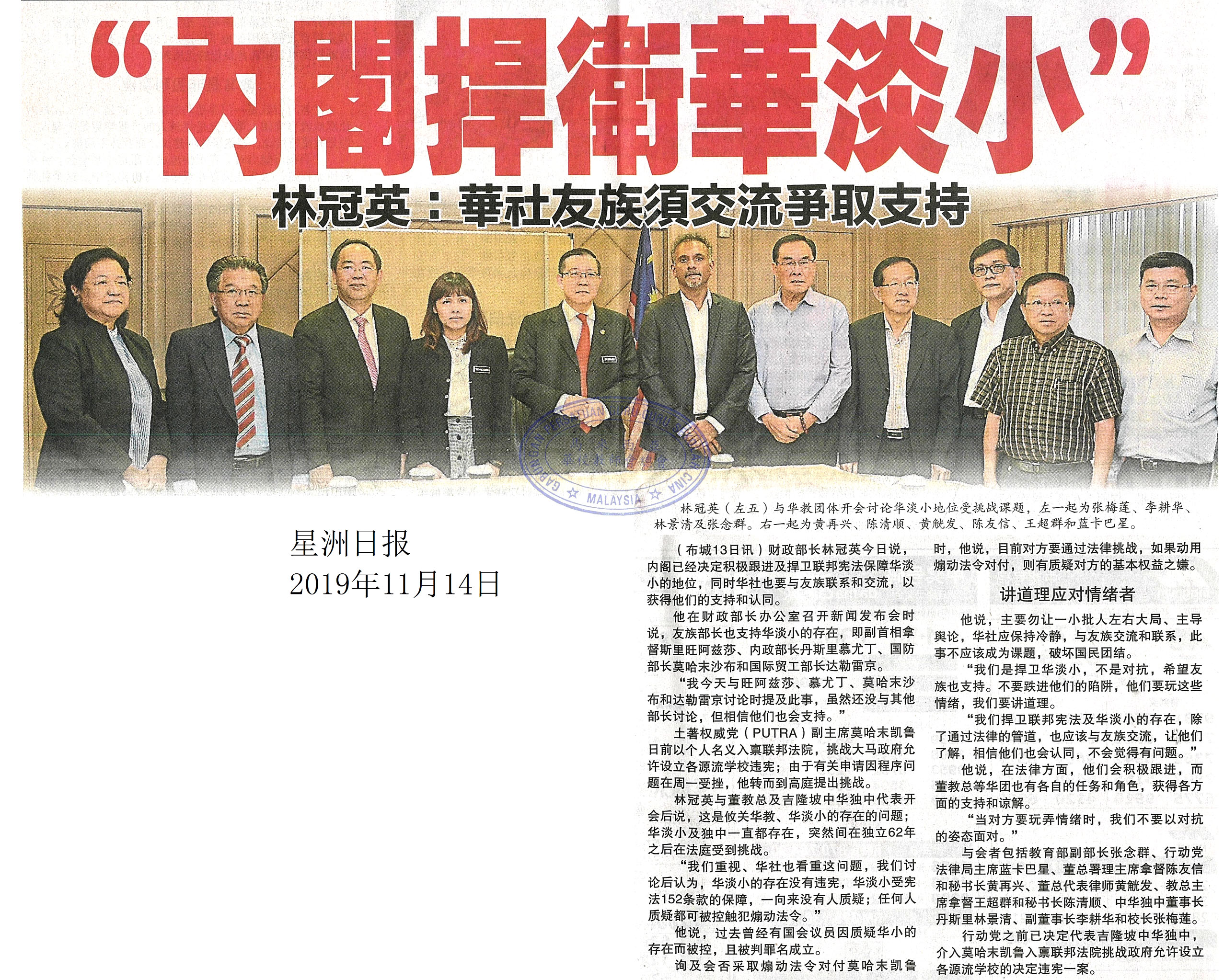 “内阁捍卫华淡小” 林冠英:华社友族需交流争取支持