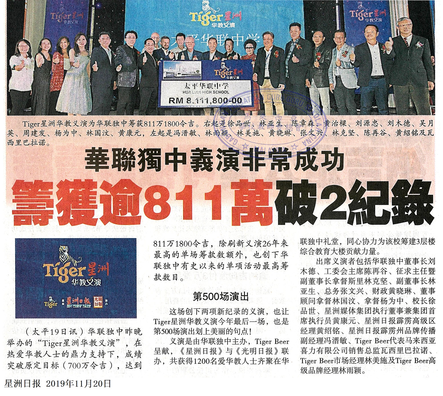 华联独中义演非常成功 筹获逾811万破2记录