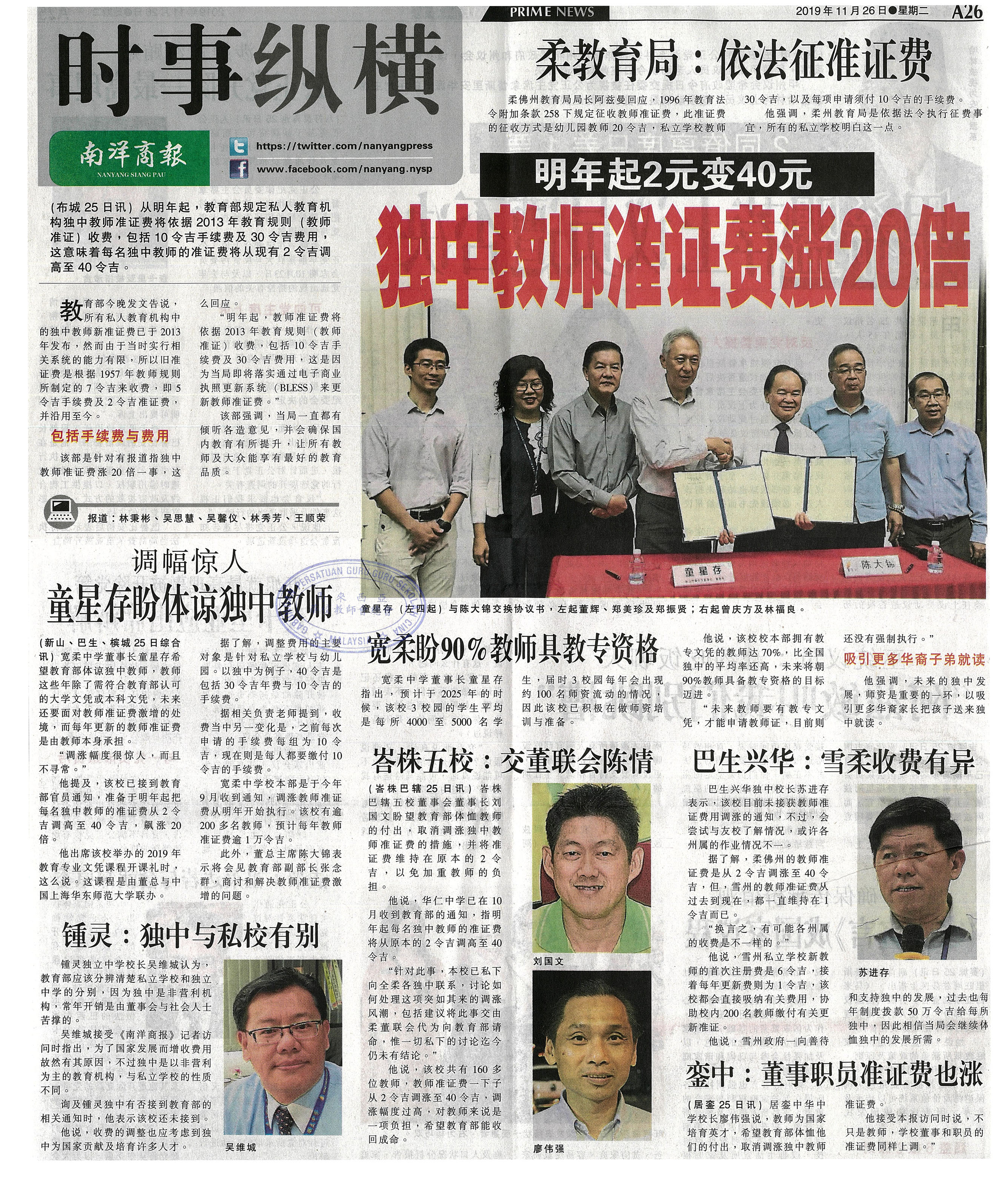明年起2元变40元 独中教师准证费涨20倍