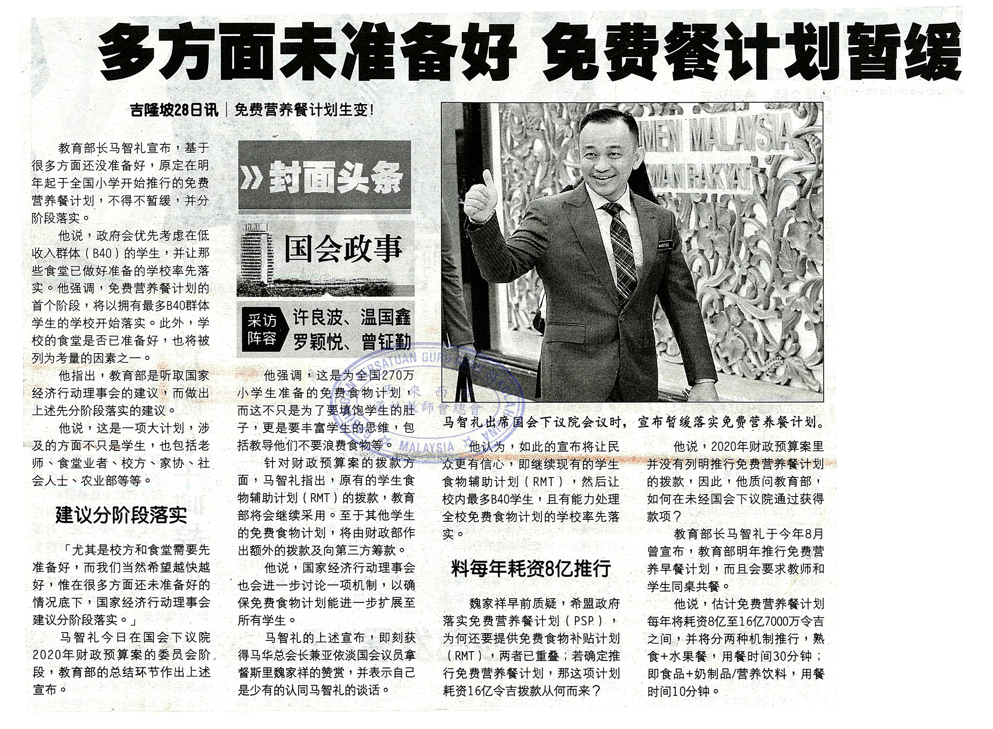 教育部暂缓免费餐计划