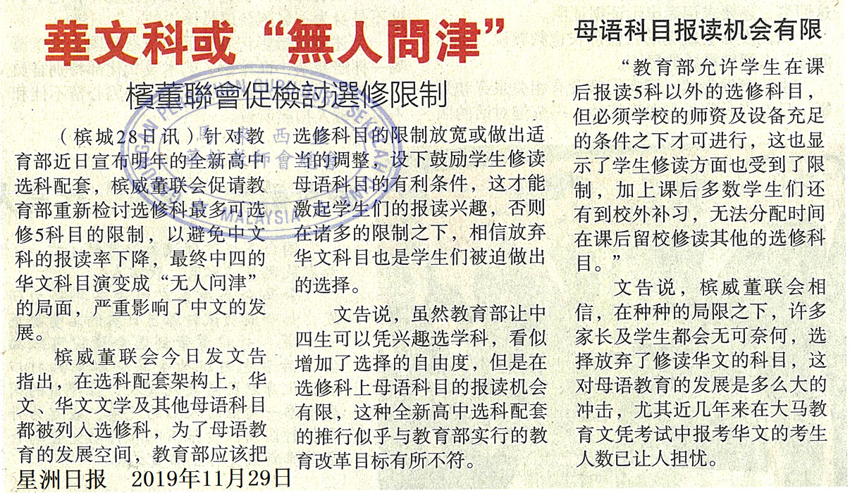 华文科或“无人问津” 槟董联会促检讨选修限制