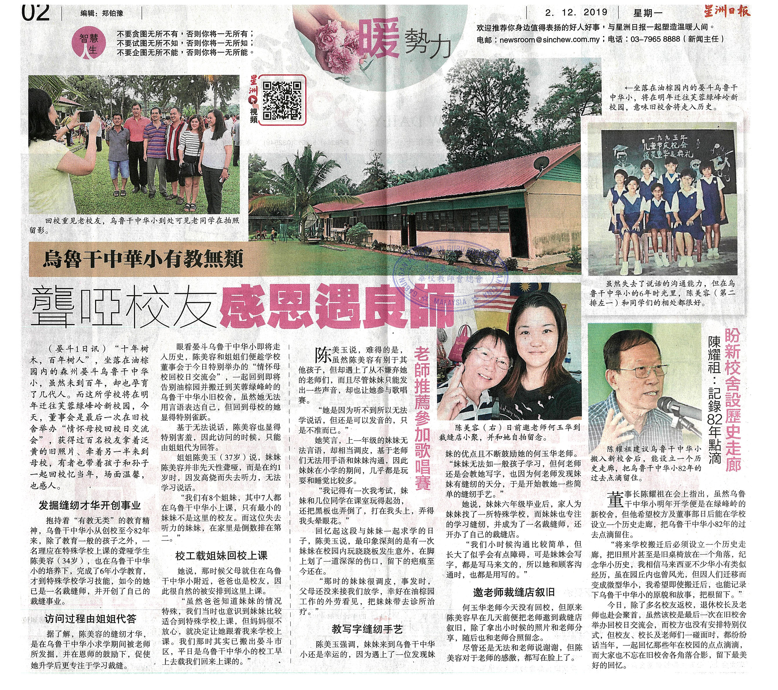 乌鲁干中华小有教无类 聋哑校友感恩遇良师