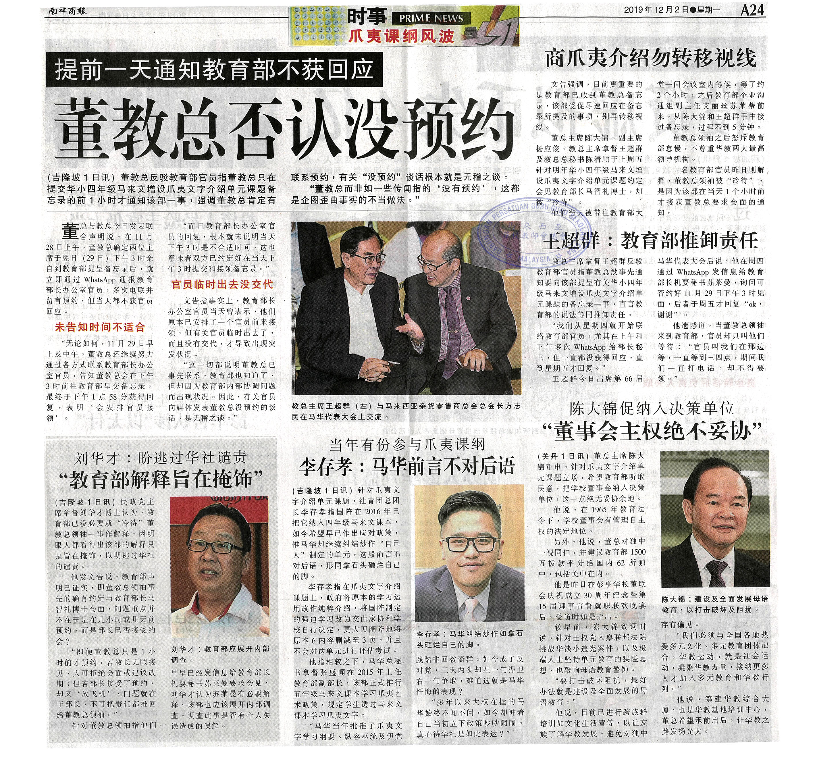 提前一天通知教育部不获回应 董教总否认没预约