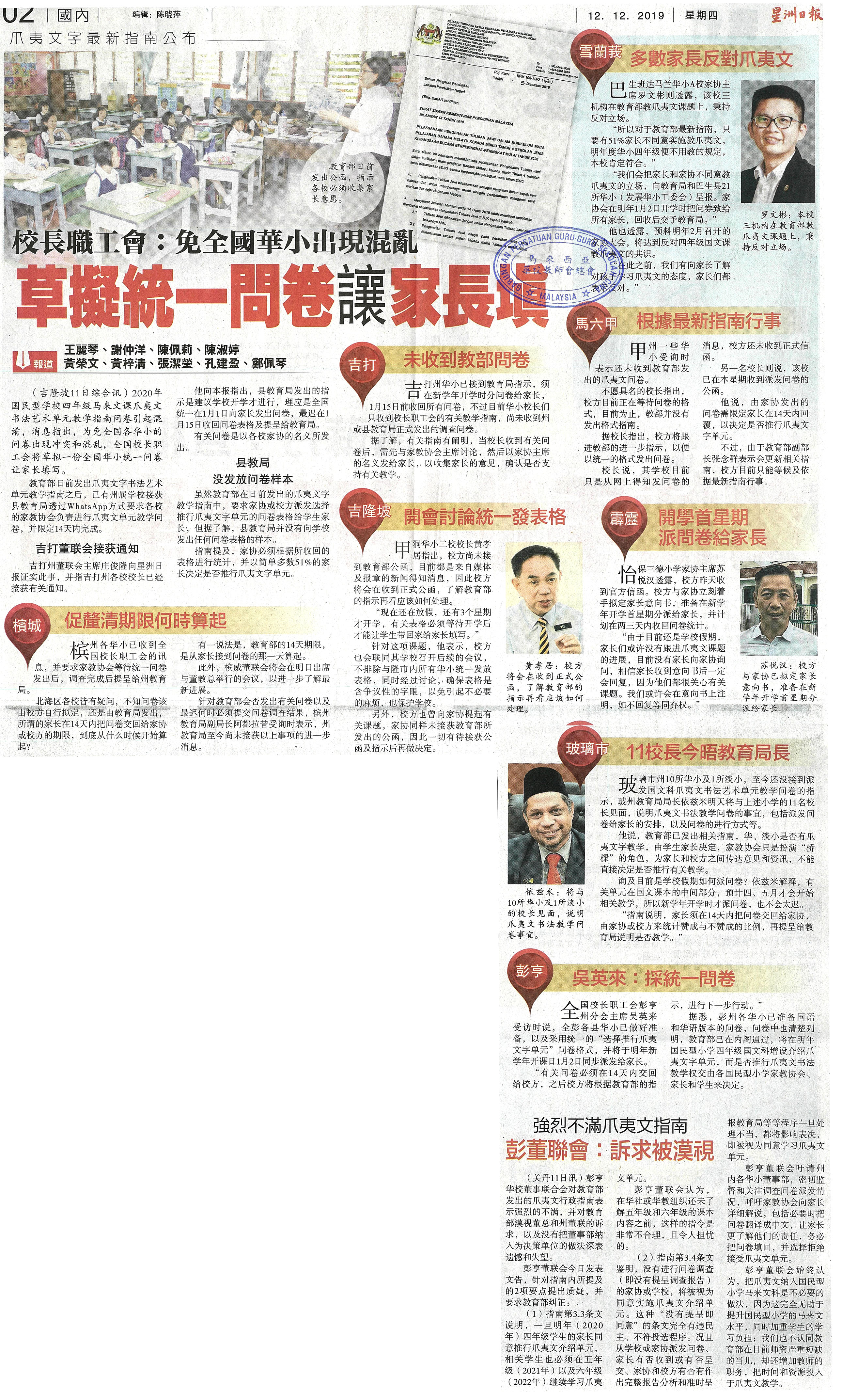校长职工会:免全国华小出现混乱 草拟统一问卷让家长填