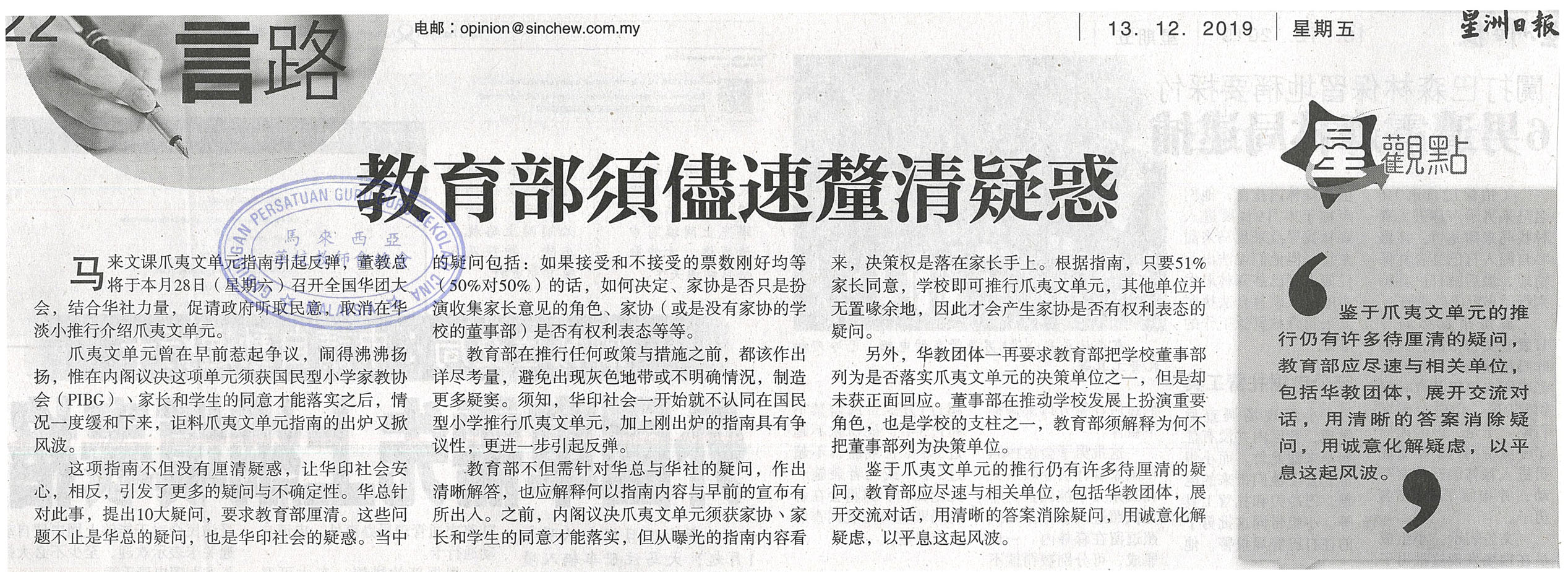 上一篇文章: 董教总发起拒爪夷单元行动 促华小退回指南抗议