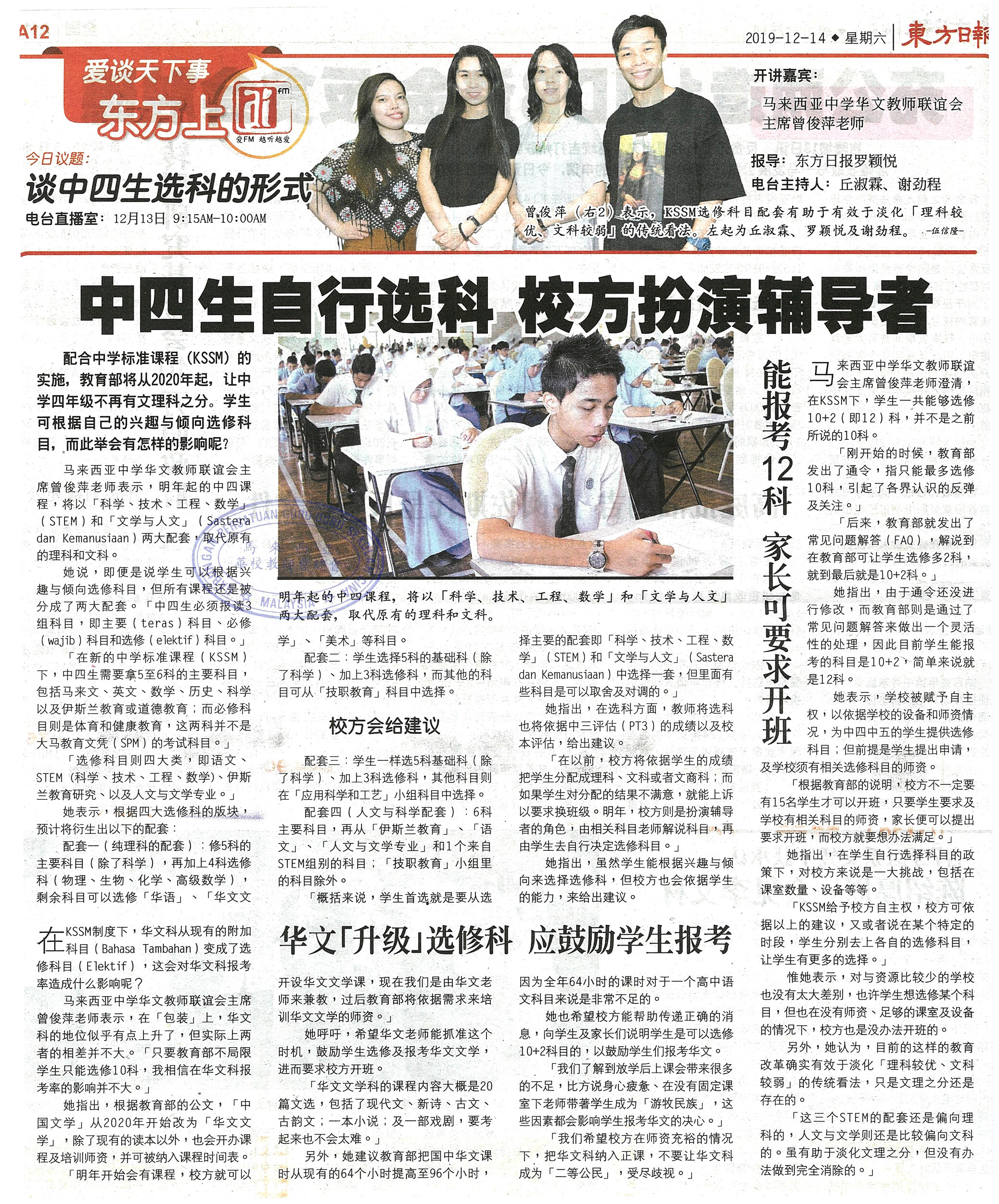 谈中四生自行选科 校方扮演辅导者