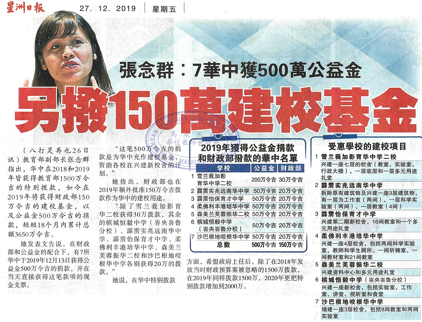 张念群:7华中获500万公益金 另拨150万建校基金 WhatsApp 上一篇文章: 初期或只招一至三年级生,新城华小盼3或6月开课 上一页 下一篇文章: 陈大锦:注册局传召例行问话 华团大会明照跑 下一页