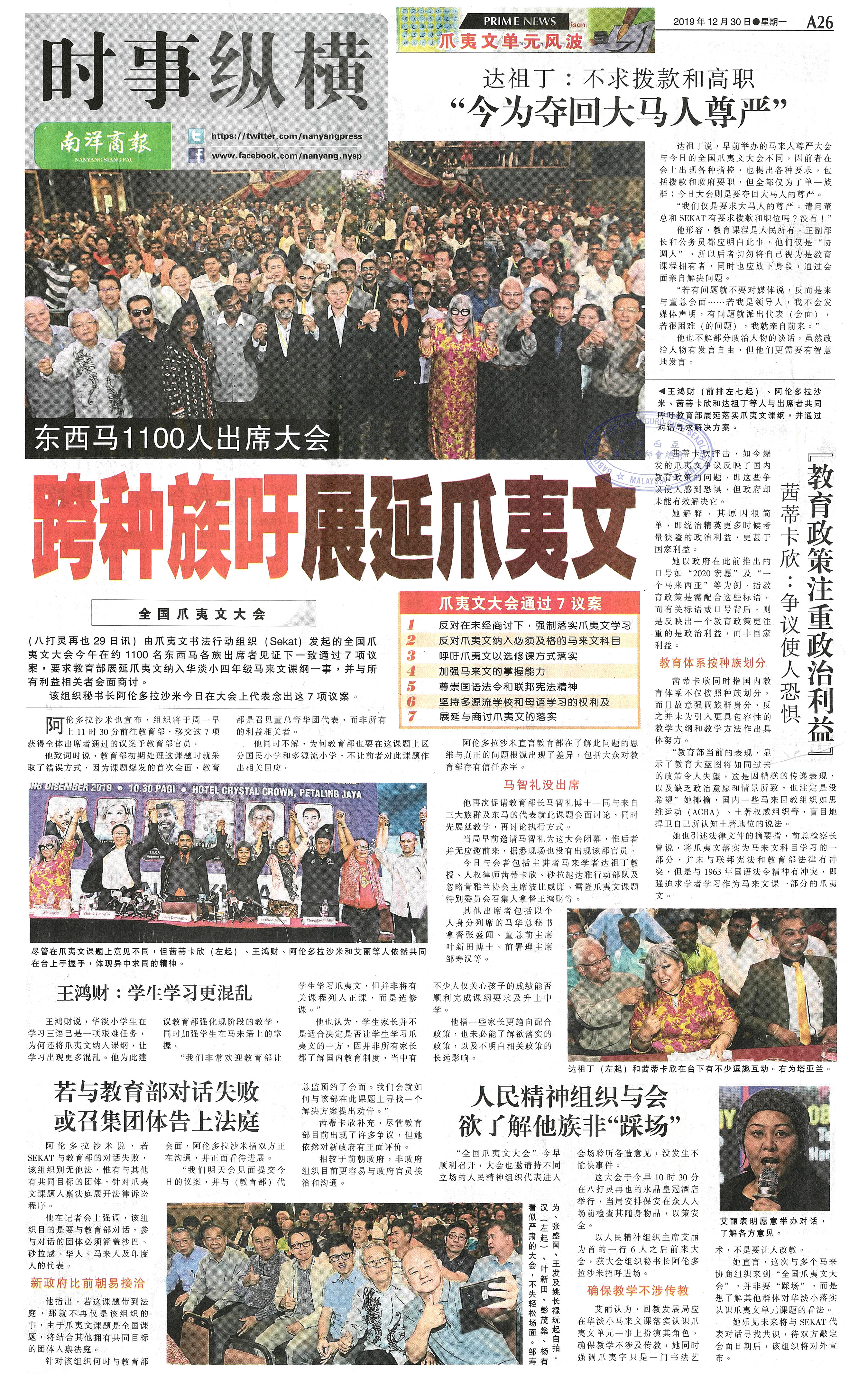 东西马1100人出席大会  跨种族吁展延爪夷文