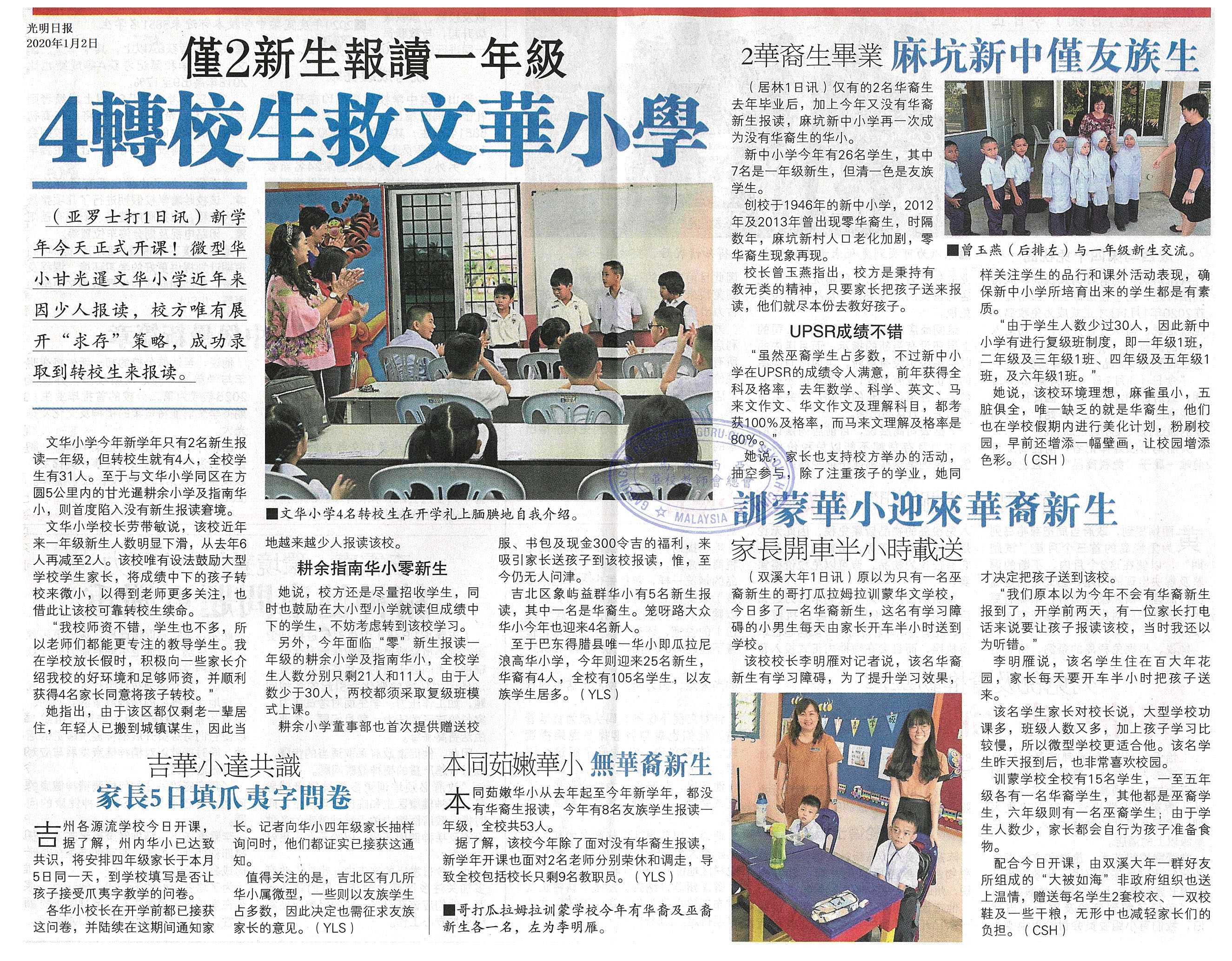 仅2新生报读一年级 4转校生救文华小学