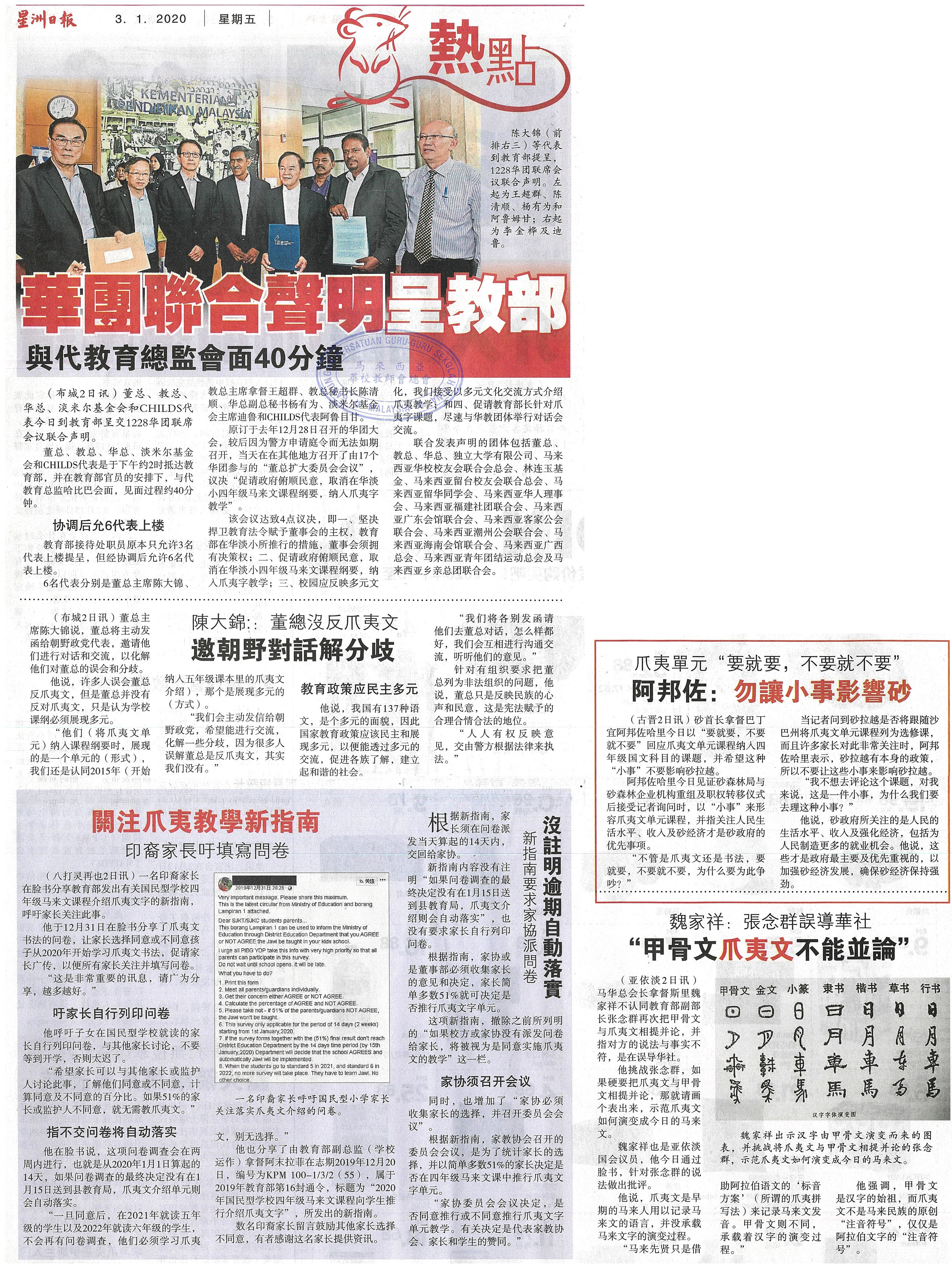 华团联合声明呈教部 与代教育总监会面40分钟