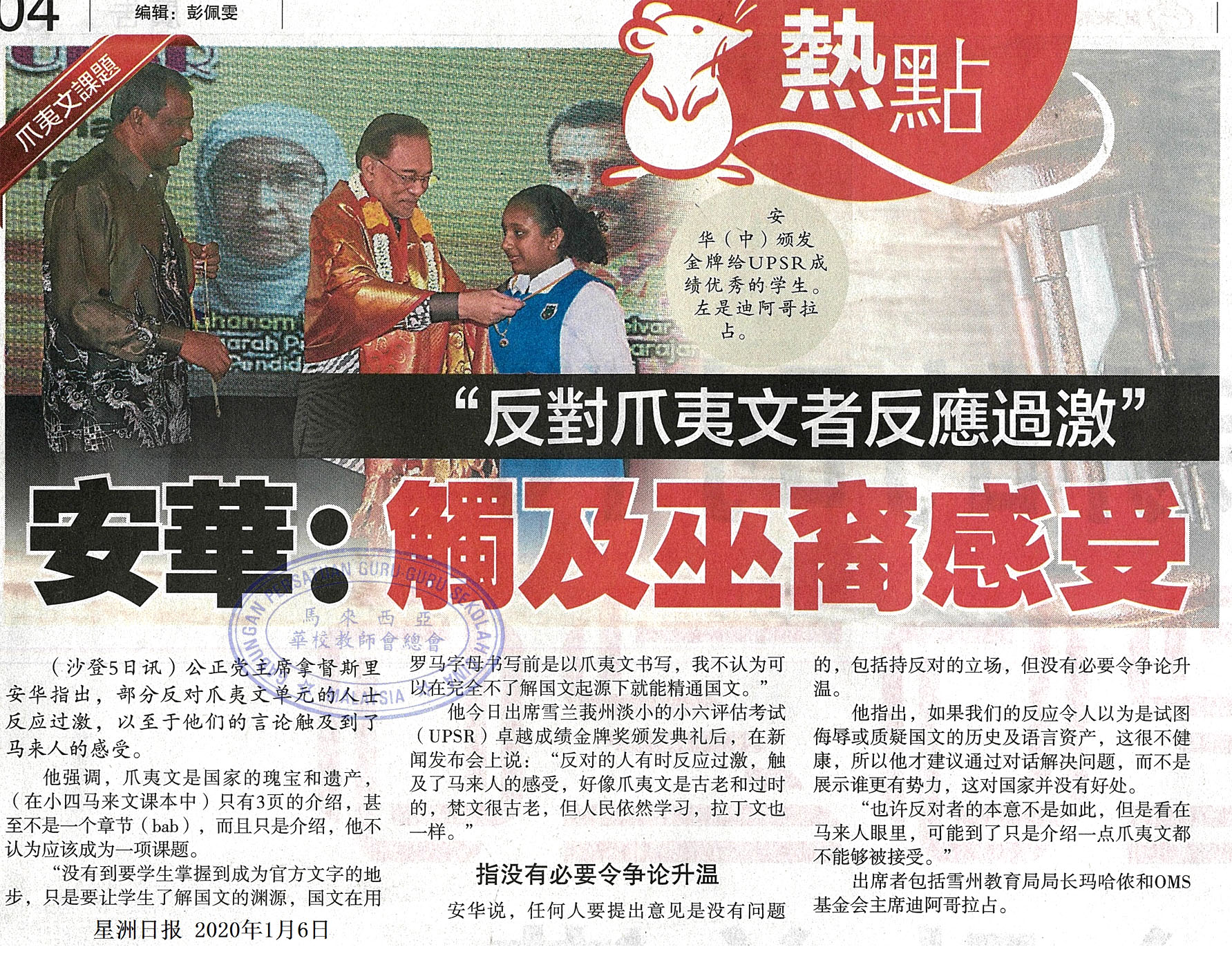 “反对爪夷文者反映过激” 安华:触及巫裔感受