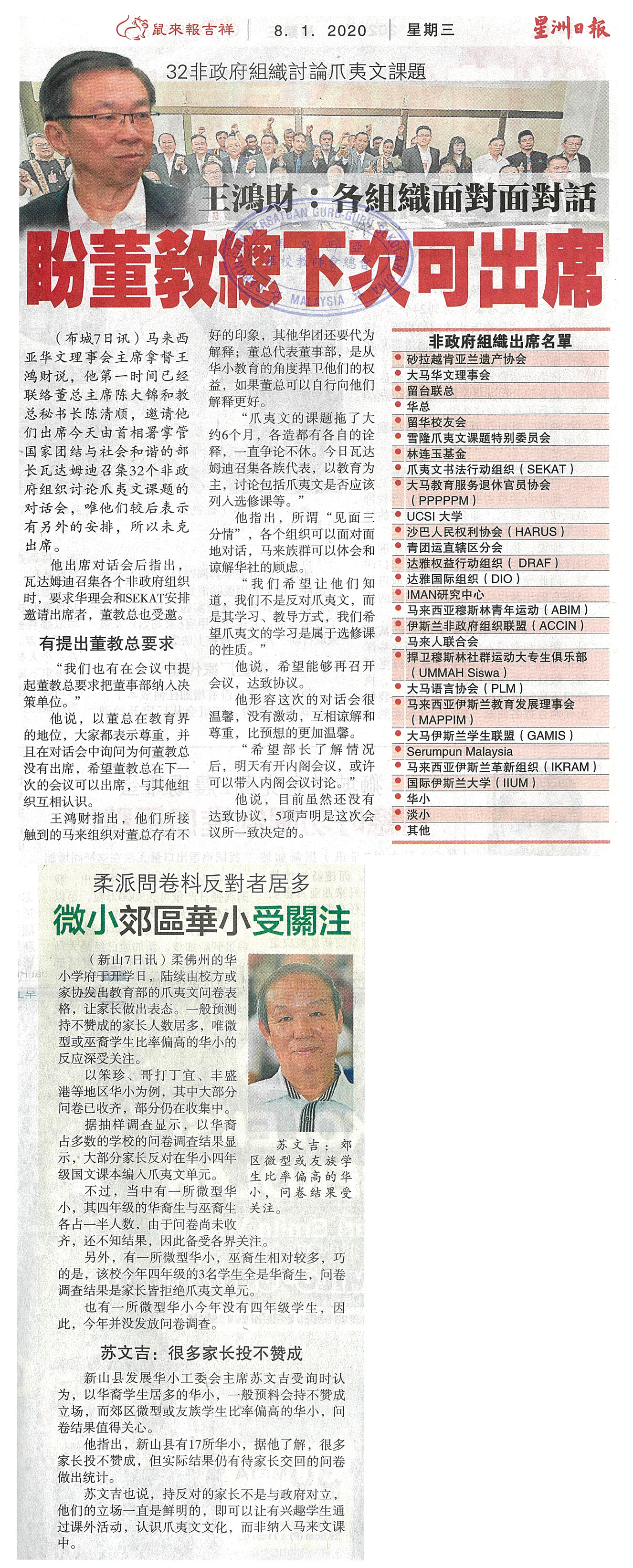 王鸿财:各组织面对面对话 盼董教总下次可出席