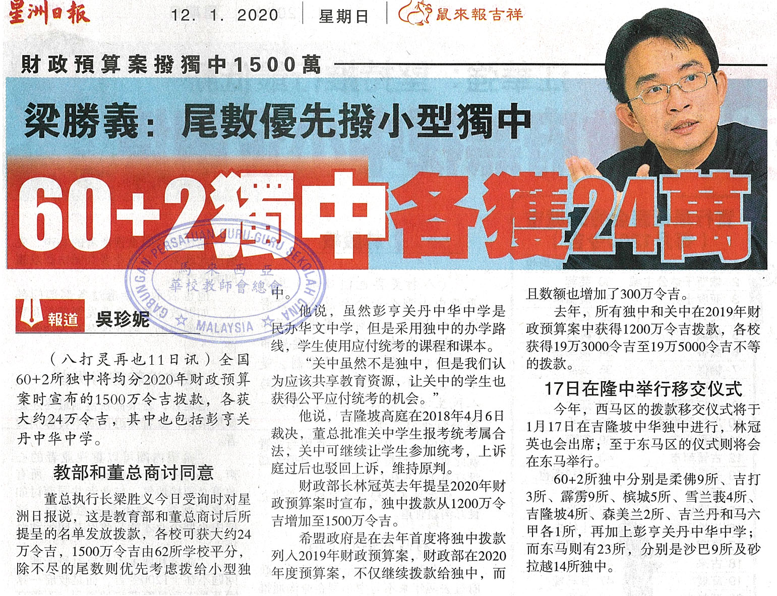 梁胜义:尾数优先拨小型独中 60+2独中各获24万 WhatsApp 上一篇文章: 邱武英:内容不会增删 择日唔首相呈统考报告 上一页 下一篇文章: TUGASAN REMEH BEBANKAN GURU 下一页