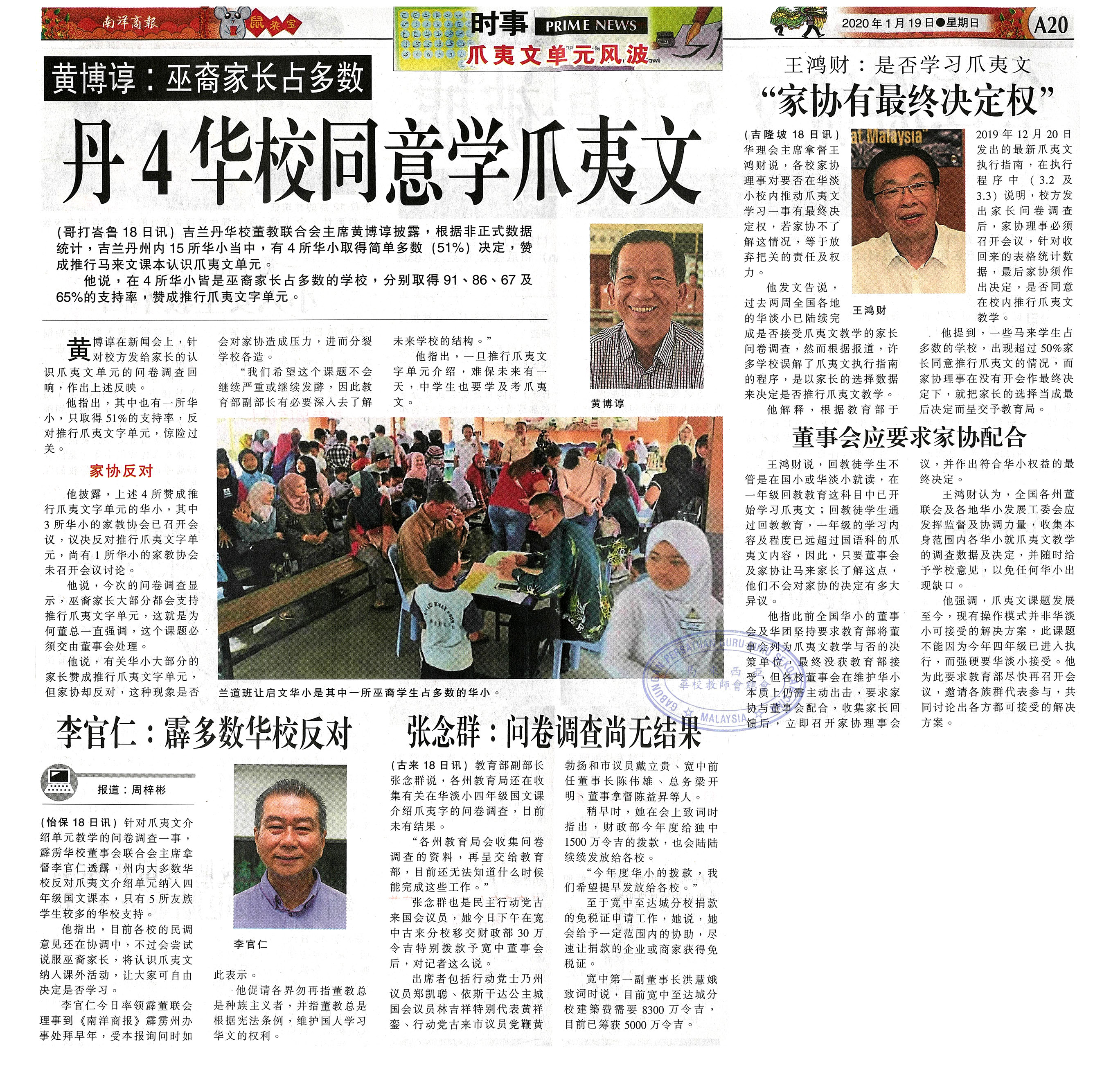黄博谆:巫裔家长占多数 丹4华校同意学爪夷文