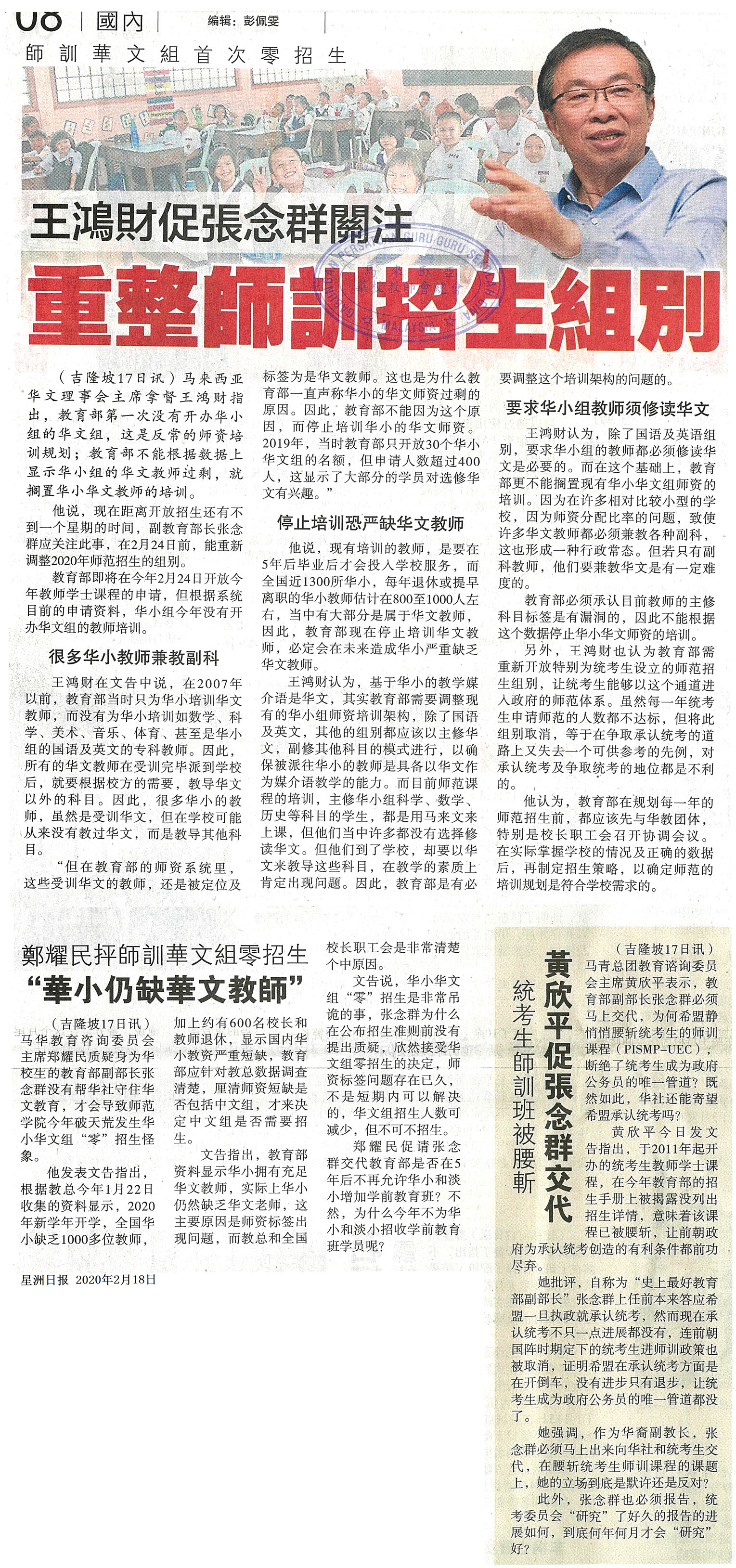 上一篇文章: 华校杏坛协会 反对宏愿学校英教数理