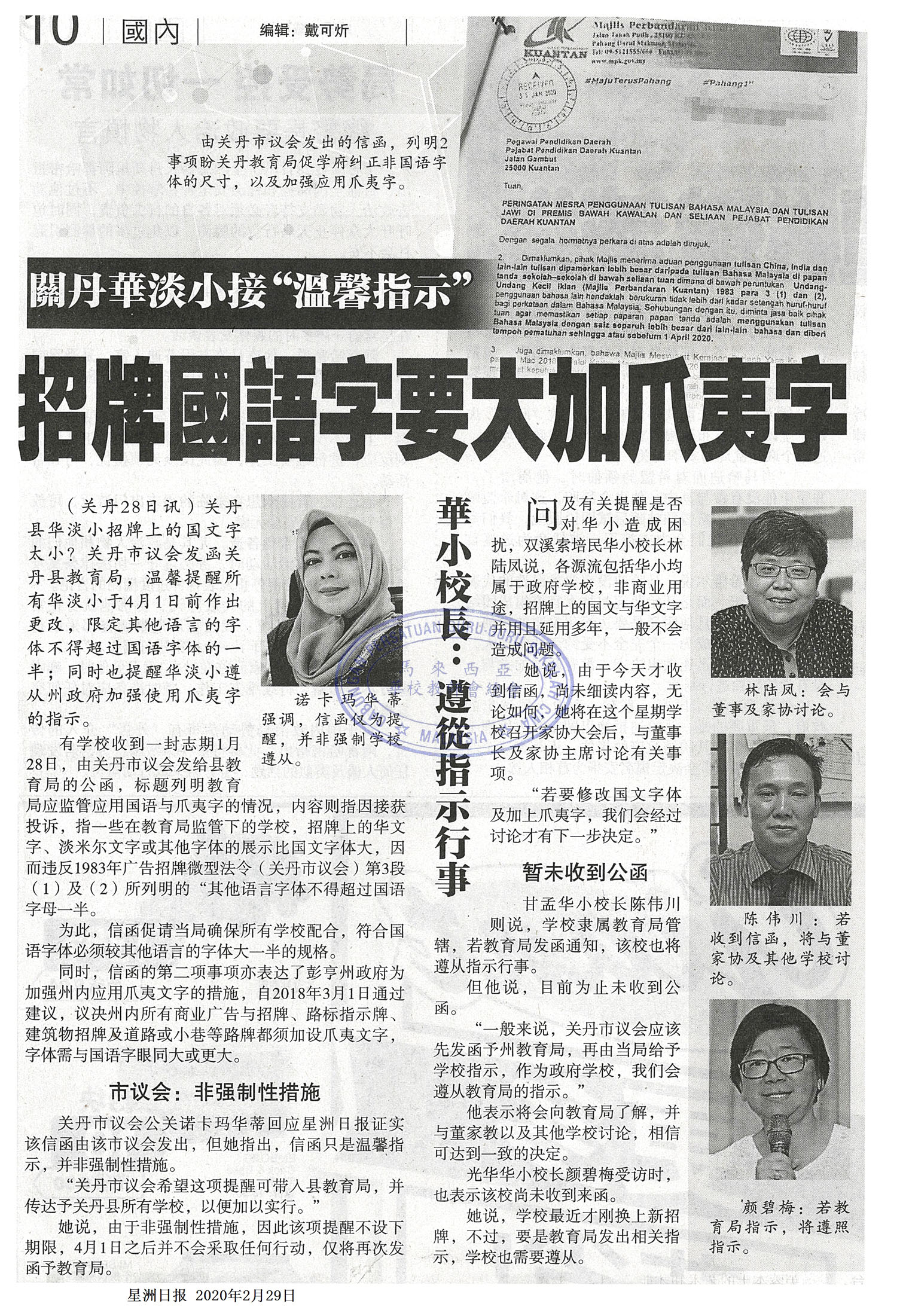 关丹华淡小接“温馨指示” 招牌国语字要大加爪夷字 WhatsApp 上一篇文章: 加影新城华小6月启用 首批迎500名学生 上一页 下一篇文章: 王鸿财:数据不能作准 “过剩7500人”或教其他科 下一页