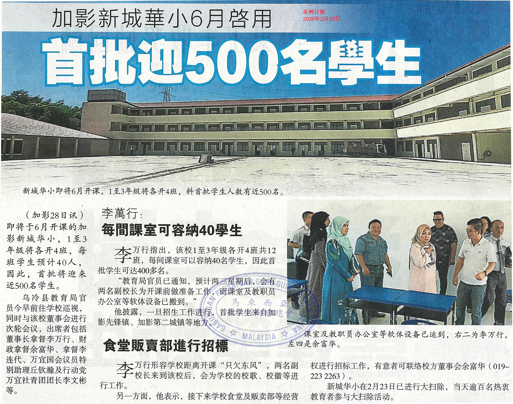 加影新城华小6月启用 首批迎500名学生