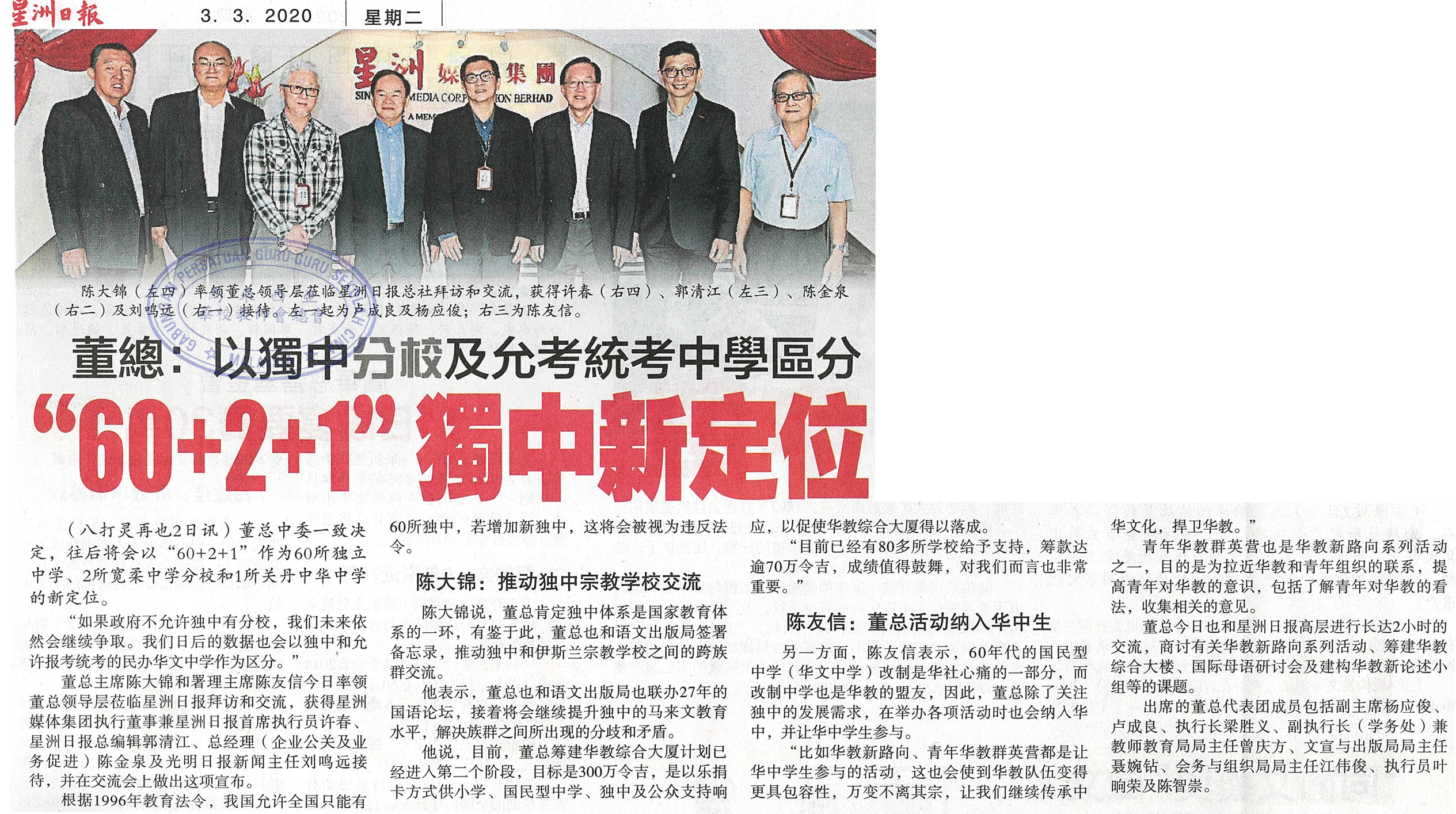 董总:以独中分校及允考统考中学区分 “60+2+1”独中新定位 WhatsApp 上一篇文章: 陈大锦:承认统考拒爪夷单元 争取唔政府寻对策 上一页 下一篇文章: 95%华小拒爪夷文单元 陈大锦:柔2校不完全拒绝 下一页