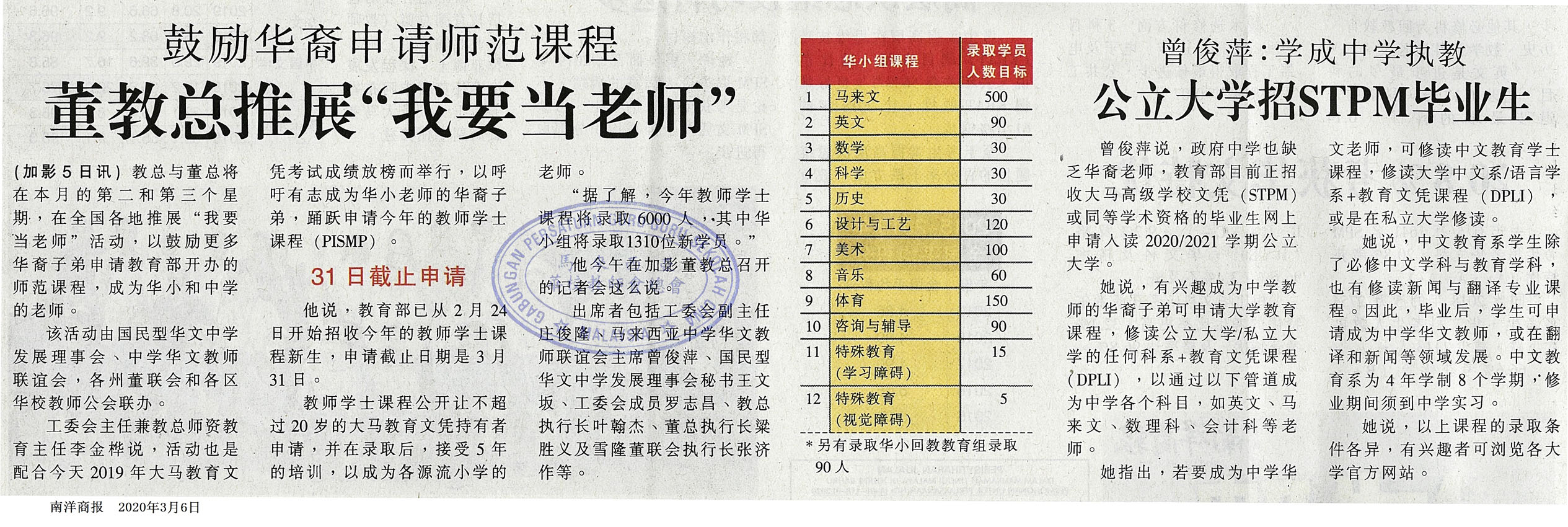鼓励华裔申请师范课程 董教总推展“我要当老师”